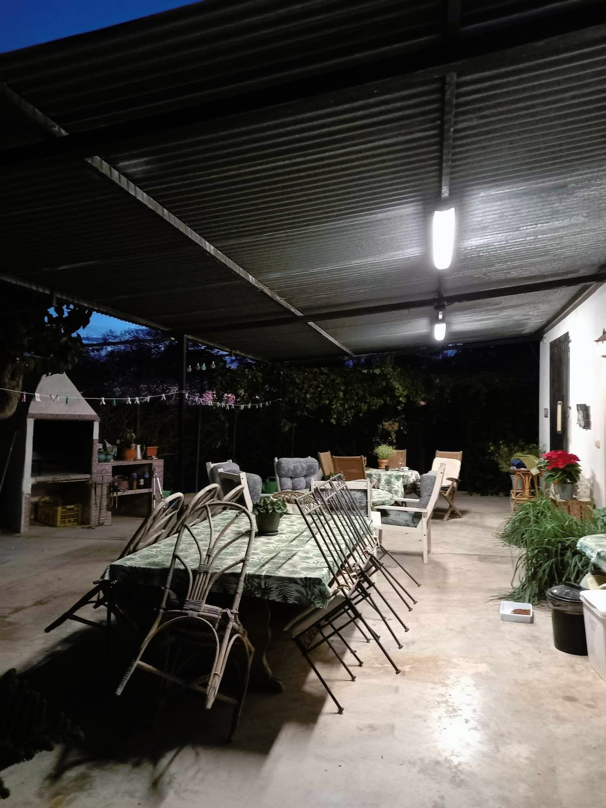 The residential area is fenced and alarmed. On the farm there is a garage and an outbuilding of approx. 38 square meters, where there were previously animals, as well as a toilet with a shower. A pool of 8x4m built in 2015. Large covered patio and a brick barbecue. Here they grill all year round with their own wood from the farm.