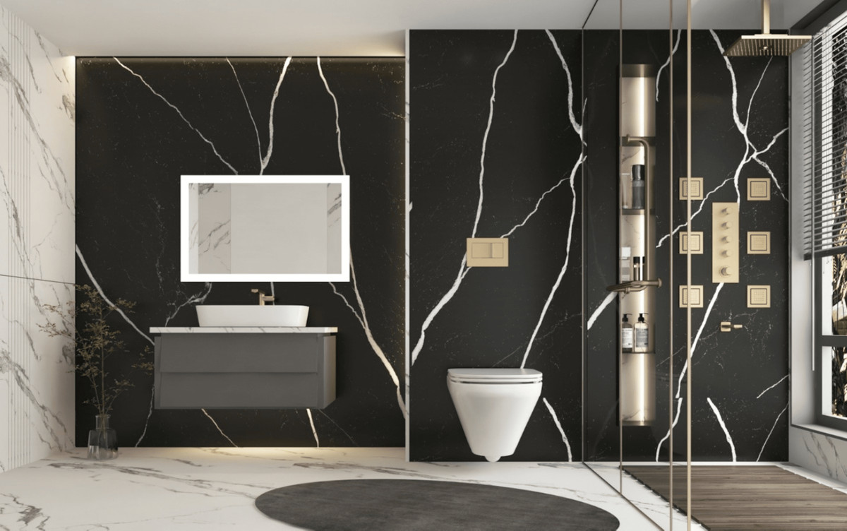 * Badeværelsesvægge med COVERLAM-plader (GRESPANIA) 2700x1200