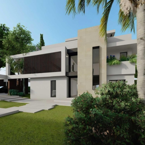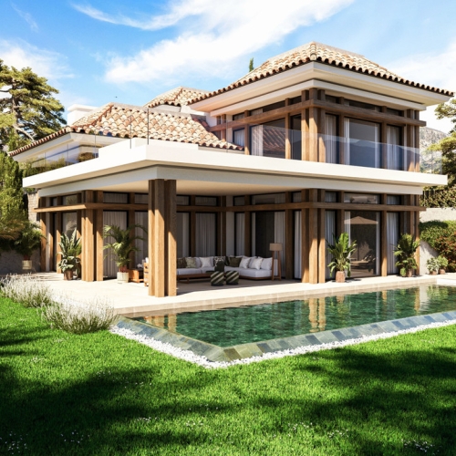 PROJEKT OG TILLADELSER GODKENDT - LUKSUS ØKOLOGISK VILLA UNDER OPFØRELSE I MARBESA, MARBELLA, ANDEN RÆKKE FRA STRANDEN MED HAVUDSIGT