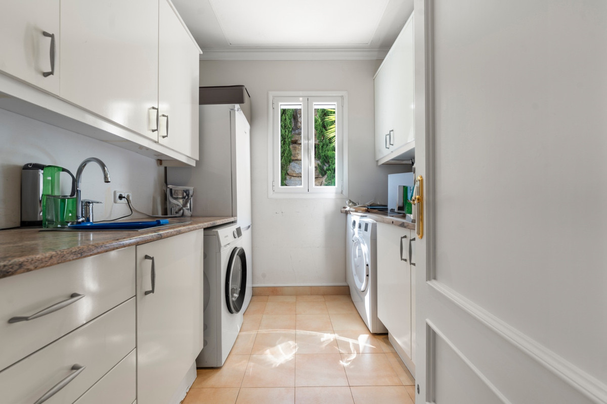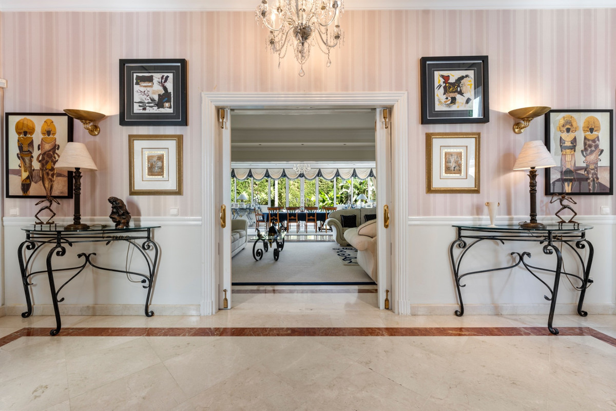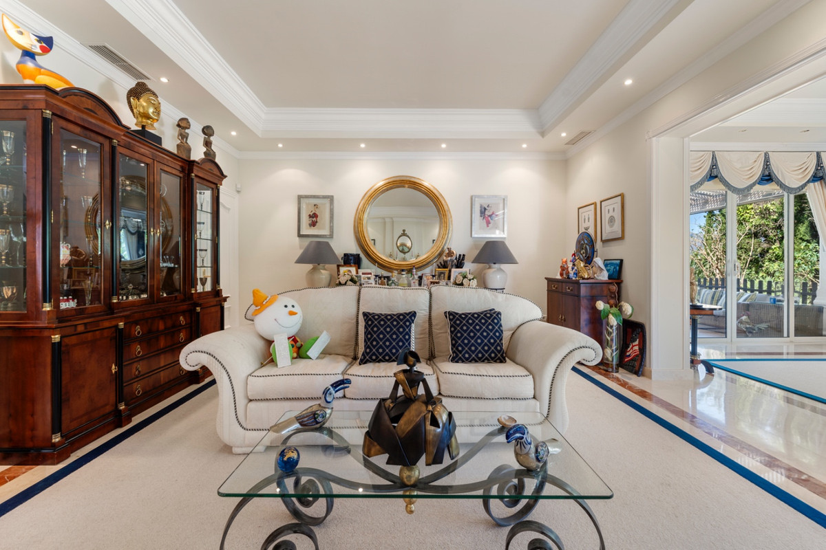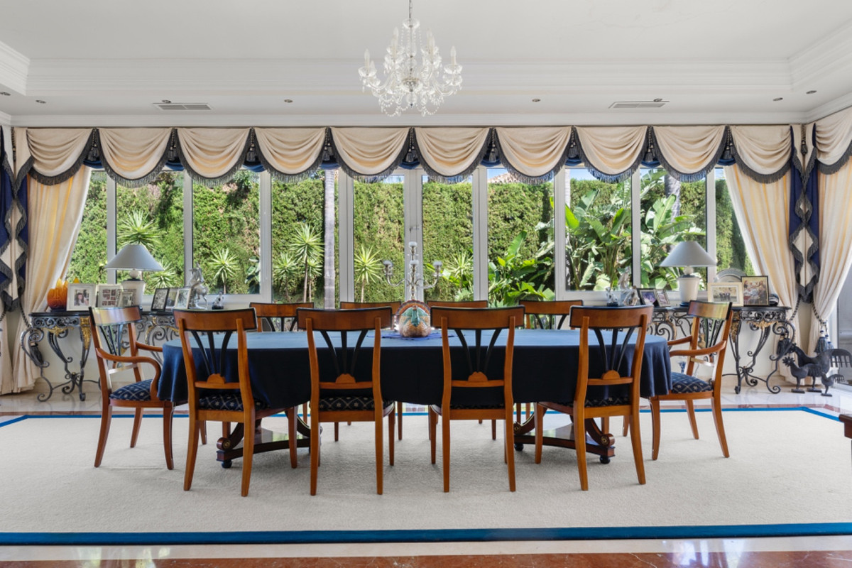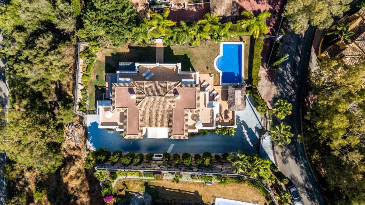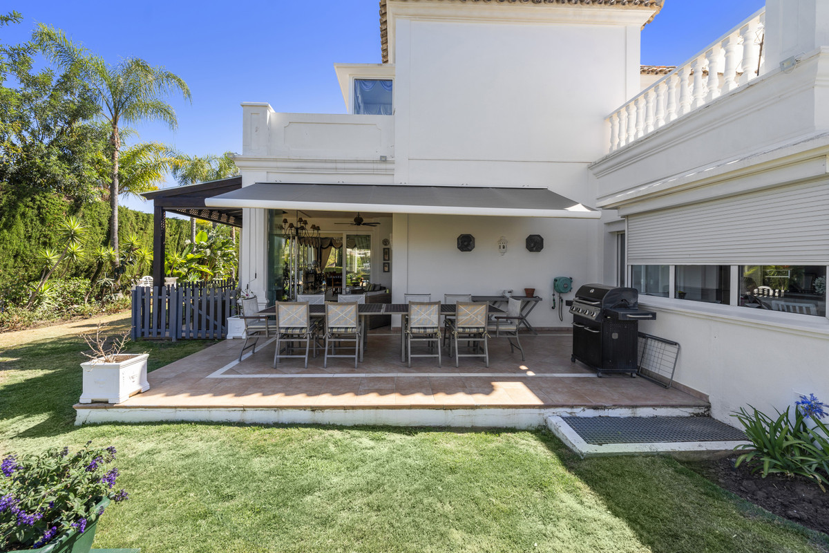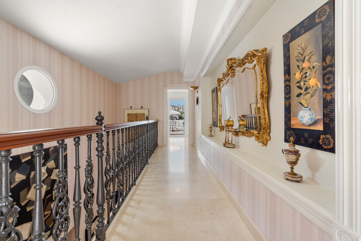 Villa Alto sits proudly within one of the coast's most exclusive gated communities, surrounded by a world-class golf course and protected by 24-hour security. This elegant five-bedroom villa combines privacy, space, and style across three levels, offering panoramic views of La Concha mountain and the lush golf valley.