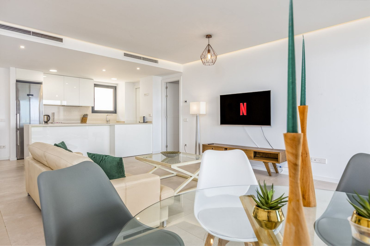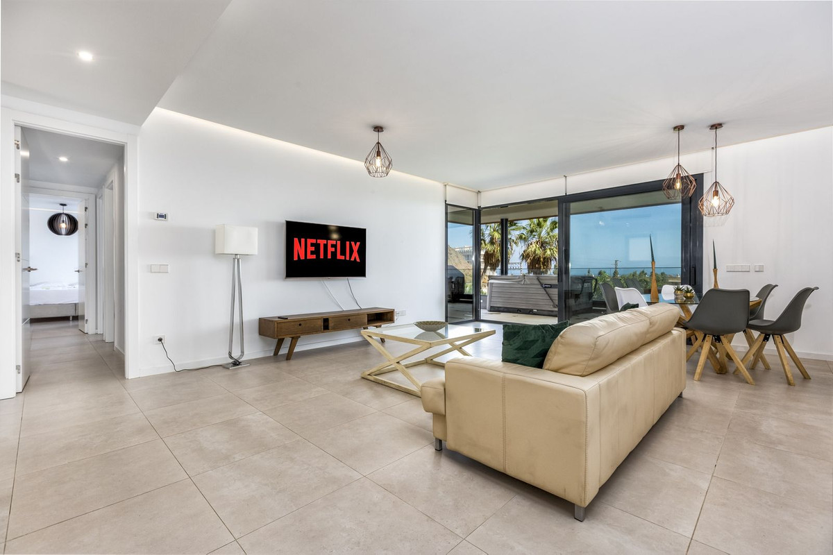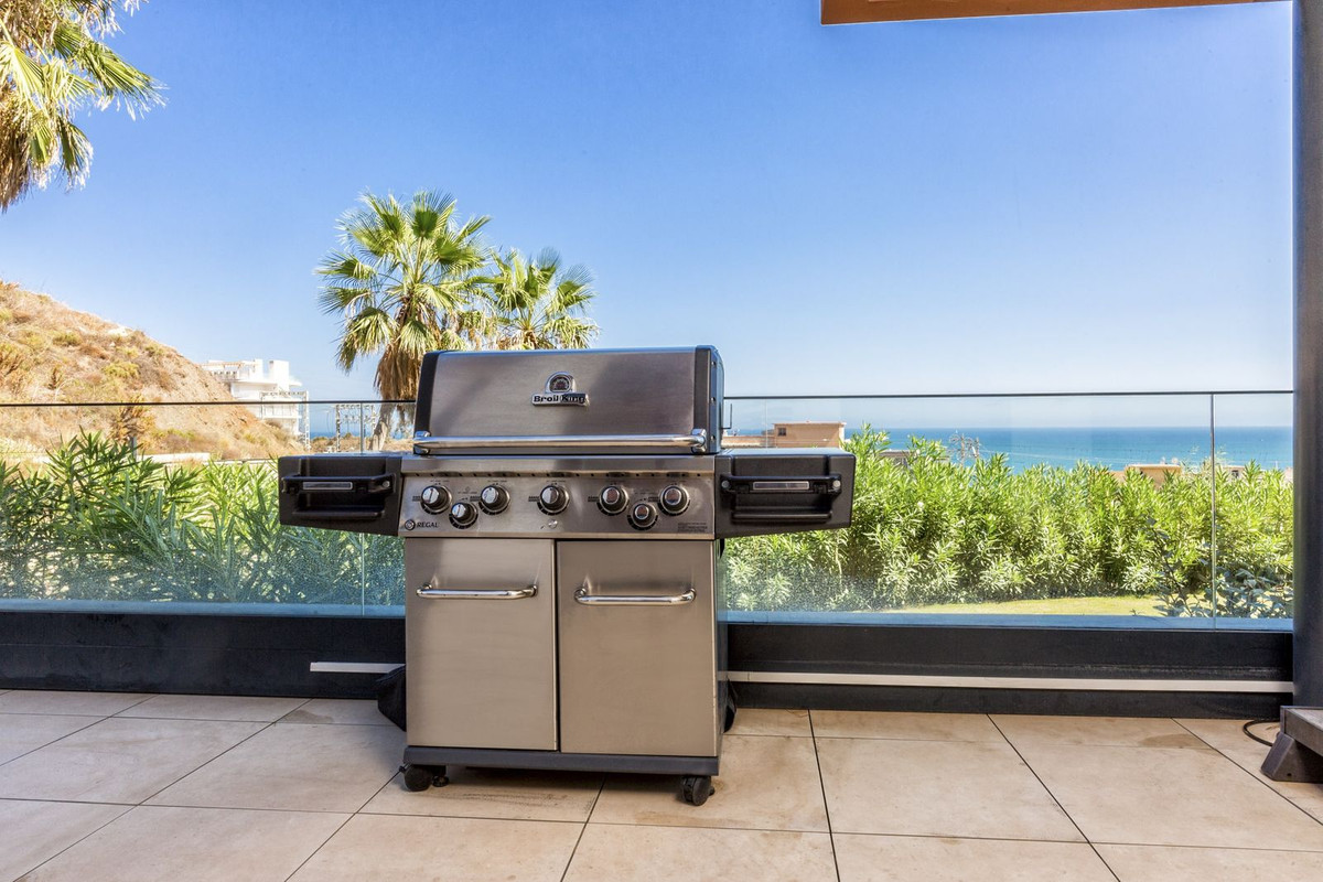 Denne lejlighed har 3 rummelige soveværelser, 2 moderne badeværelser og en åben stue, der fører til en fantastisk 63m² stor terrasse. Terrassen er perfekt til underholdning, med en indbygget grill og en privat jacuzzi, hvor du kan slappe af og nyde den betagende udsigt over Fuengirola-kysten.