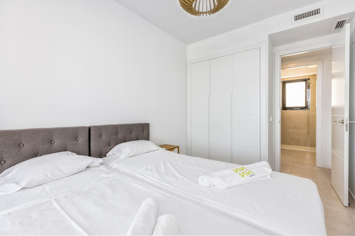Forestil dig at eje en fantastisk, fuldt møbleret 3-værelses lejlighed kun 500 meter fra stranden i det eksklusive Reserva del Higueron-samfund. Denne ejendom tilbyder ikke bare et hjem, men også en luksuriøs livsstil med panoramaudsigt over havet og nem adgang til strandbarer, restauranter og butikker—alt sammen inden for gåafstand.