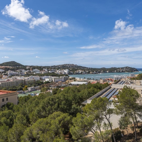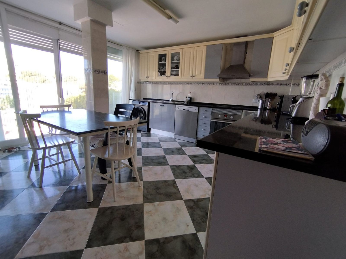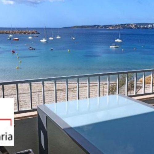 Apartment in Palma Nova (Calvia) with sea and beach views of about 200 m2 + 50 m2 terrace with 4 bedrooms, one of them with dressing room and two bathrooms, very spacious living room of 52 m2 and kitchen of 30 m2, built-in wardrobes, double glazing, air conditioning hot/cold, two parking spaces and two storage rooms, they are two apartments together with two deeds so if you want it could be divided again into two., it has an elevator.