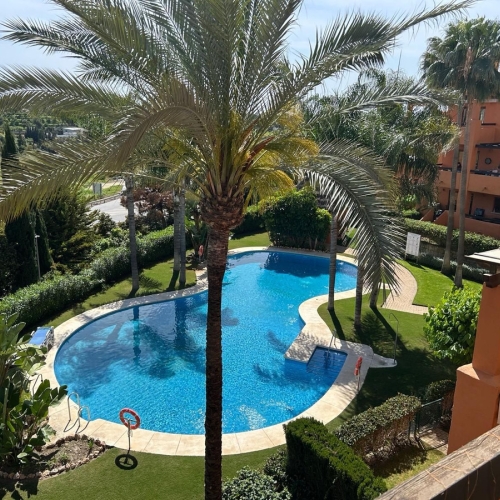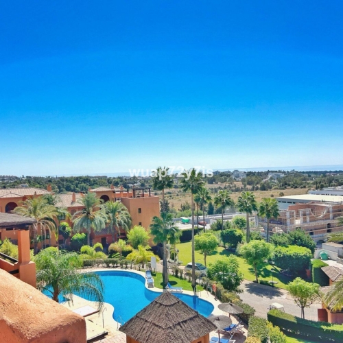 Rummelig penthouse i Benahavis med følgende planløsning. Hovedetagen har en åben planløsning, der fører til en terrasse med udsigt over poolen og landsbyen. Det moderne køkken er fuldt udstyret med top-of-the-line apparater og ekstra opbevaring.