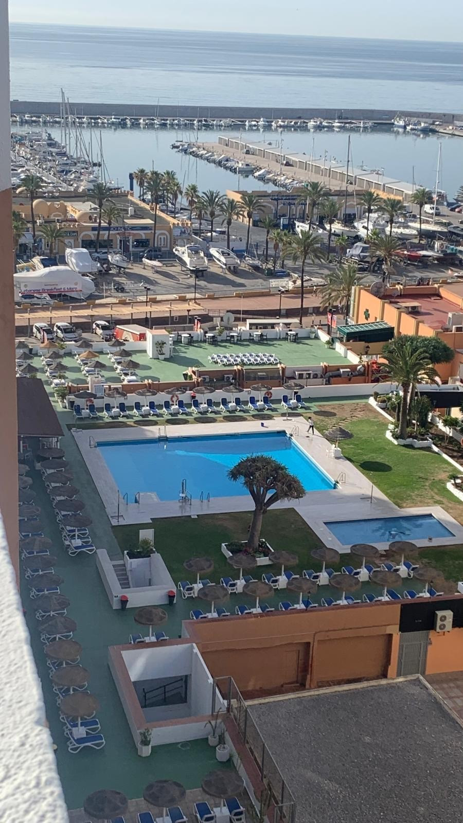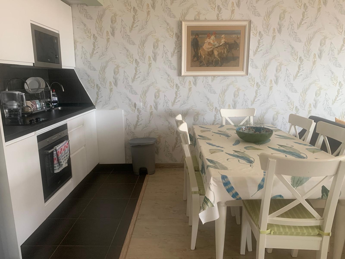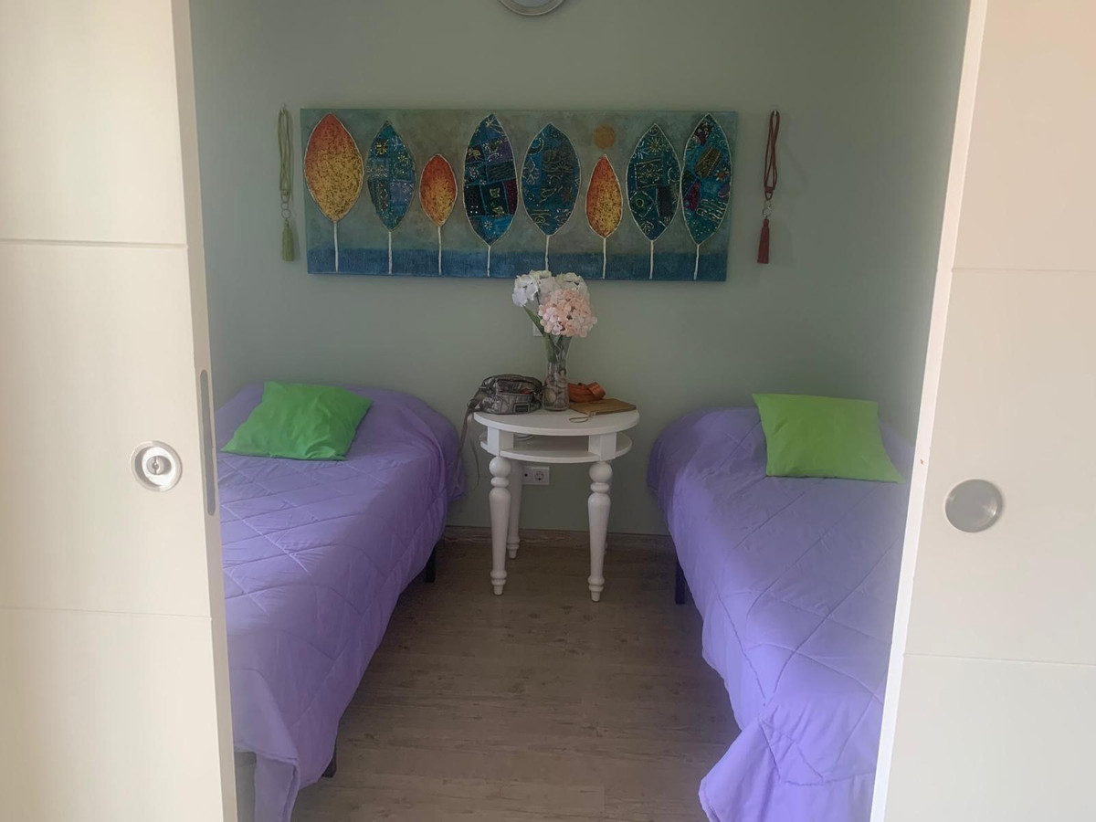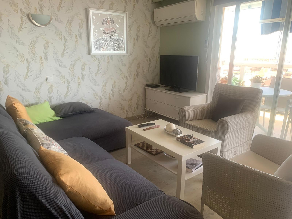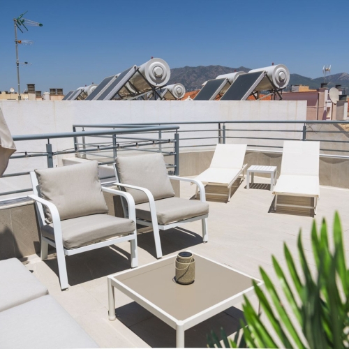 Nestled near the vibrant port of Fuengirola, this stunning two-level penthouse offers a blend of luxury and comfort. The lower level welcomes you with a spacious hall leading to two elegant bedrooms, a fully-equipped modern kitchen, a cozy living room, and a stylish bathroom. The living room opens onto a serene, glazed balcony—perfect for unwinding in the cool shade.