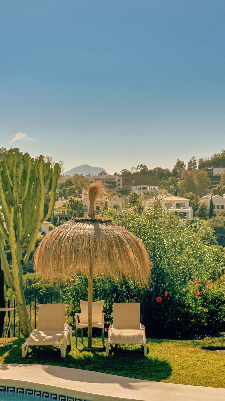 Perfect orientation with evening sun with views over the La Quinta Golf course and the surroundings.