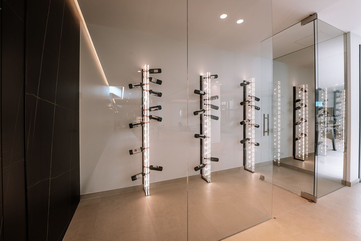 The villa is designed for ultimate comfort and entertainment. It offers seven luxurious bedrooms, each with its own ensuite bathroom, providing complete privacy and convenience. Additionally, there are guest toilets on both the ground floor and in the basement. The expanded kitchen is a chef's dream, featuring a large island, an additional American-sized refrigerator and freezer, a large glass chiller, a hidden cooktop, and all Miele appliances.