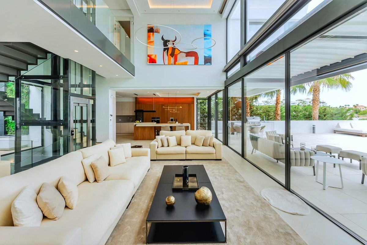The moment you step into this ultra-comfortable, eco-friendly home, you are captivated by the open views to the golf course and the sea and transported into a realm of unparalleled modern luxury that stimulates the senses and sparks limitless creativity. The villa captivates with its exquisite architectural details, open-plan spaces with high ceilings, and expansive glass walls. The refined color palette, featuring shades of grey alongside a timeless black-and-white duo, exudes an elegant, stylish, and ever-fashionable ambiance.