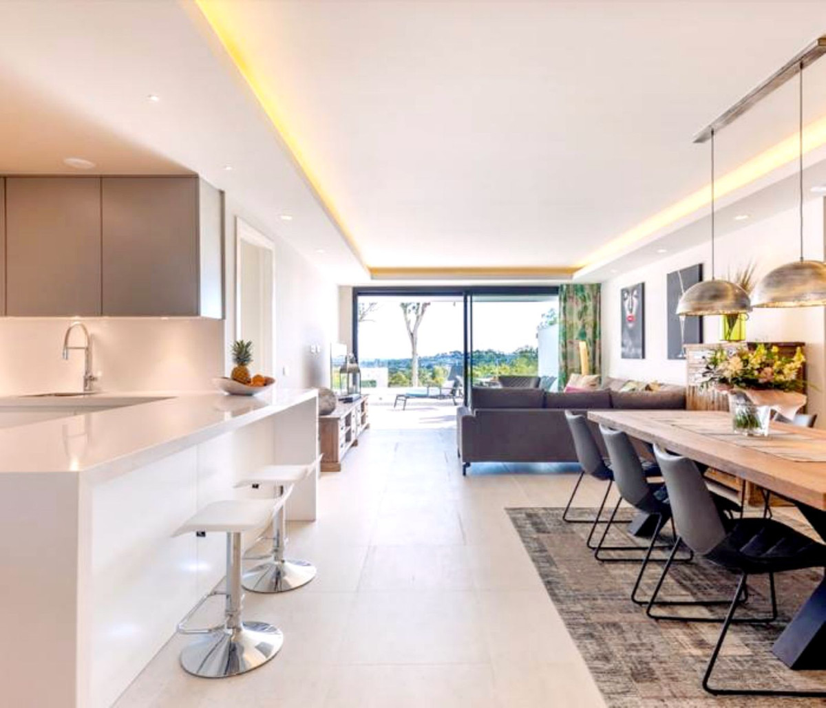 Step inside and be greeted by a spacious, fully equipped kitchen, seamlessly integrated with an elegant living and dining area. The panoramic windows flood the space with natural light and open up to a covered terrace where you can soak in stunning views of the Mediterranean Sea. The terrace extends to a lush, private lawn, providing additional views of the iconic Concha mountain. With both shaded and sunlit areas, the terrace is perfect for outdoor dining, entertaining, or even adding a private pool or Jacuzzi to enhance your outdoor oasis.