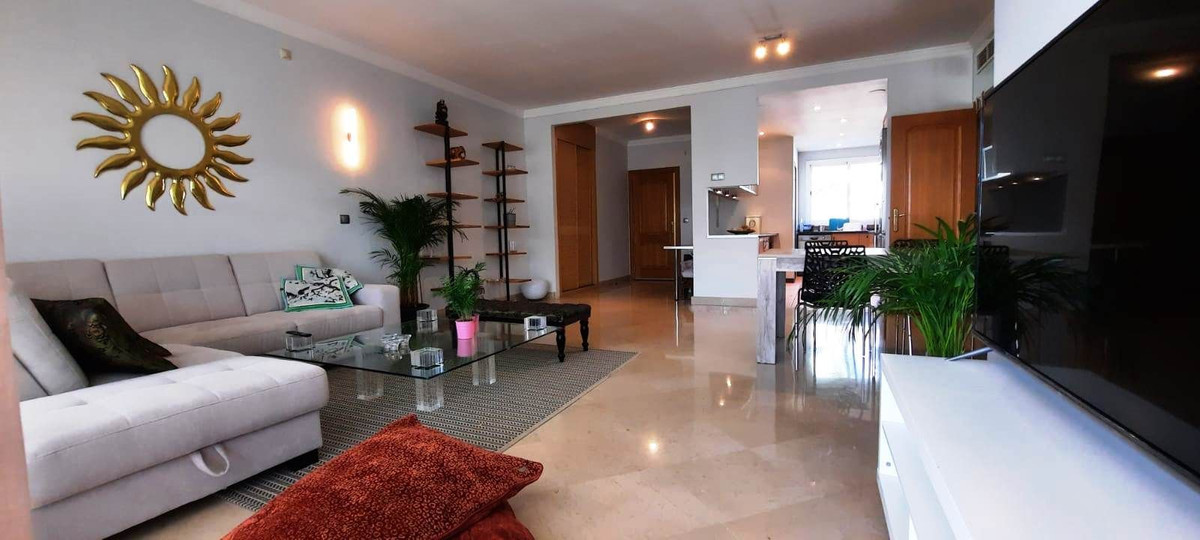 Apartment on the Golden Mile of Marbella. It is located in an exclusive complex with tropical gardens and community pool 500m from Casablanca Beach and Trocadero Playa. The urbanization is located 10 minutes walk from the center of Marbella and 10 minutes by car from Puerto Banús.