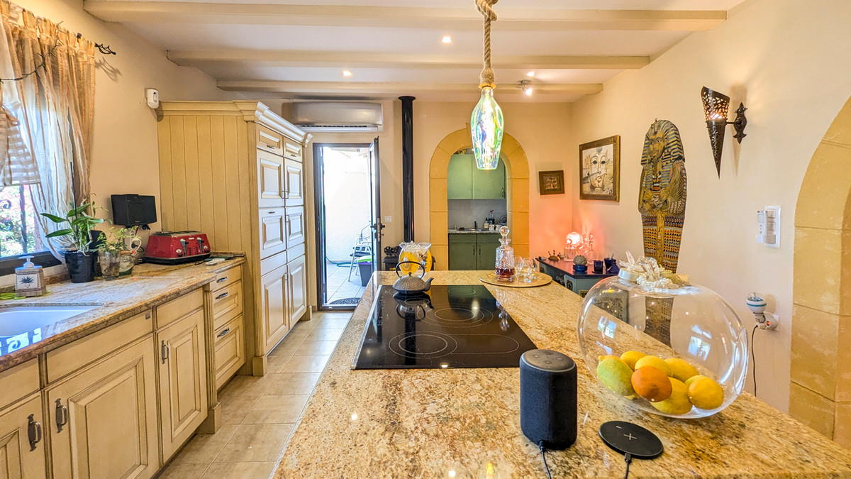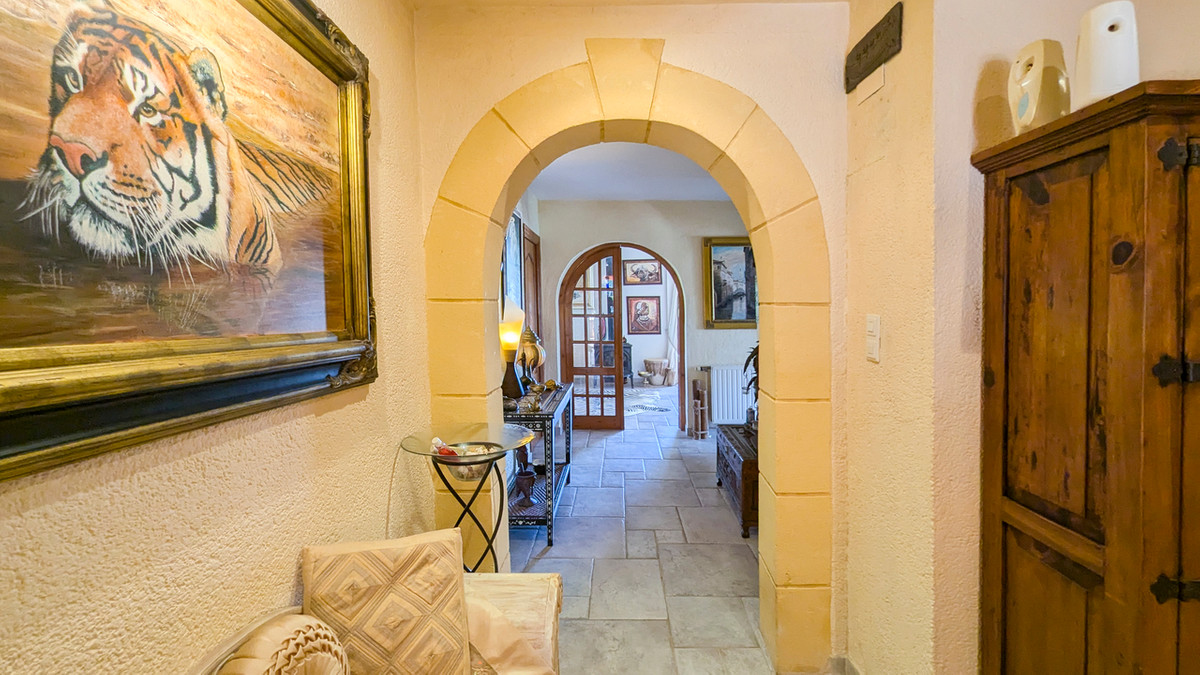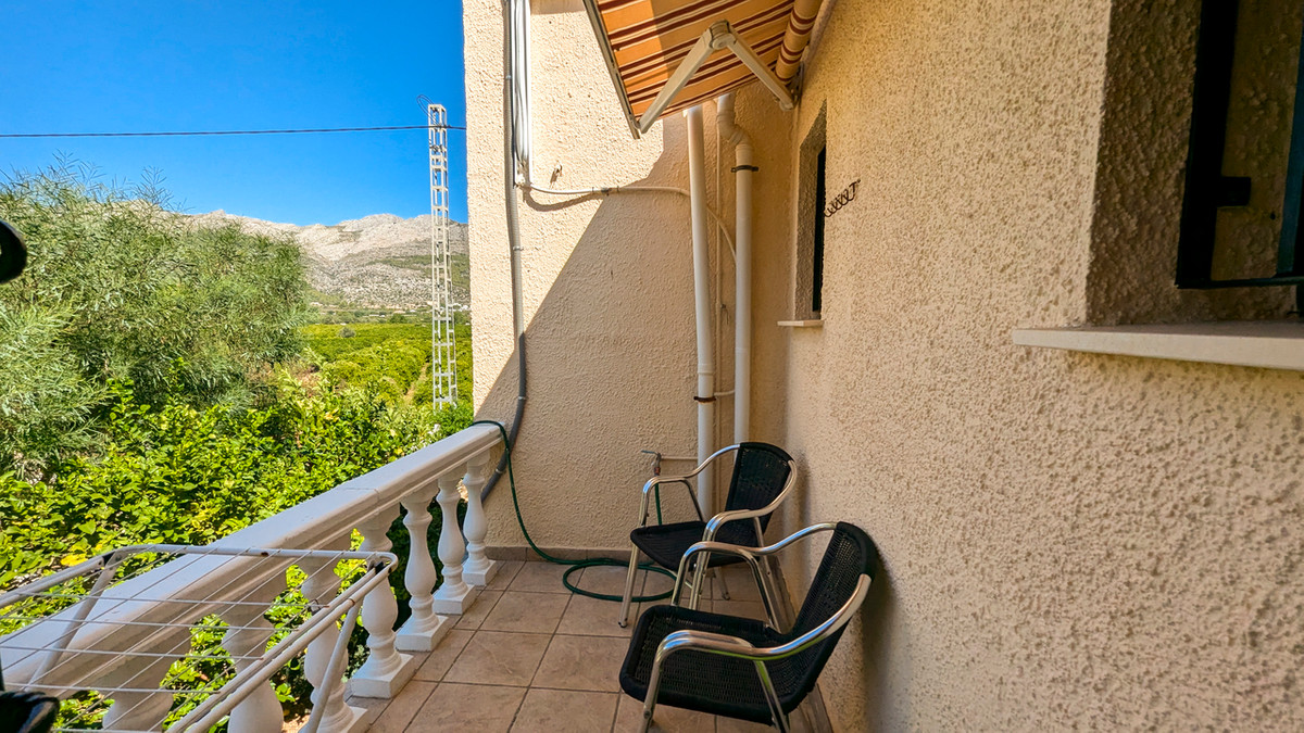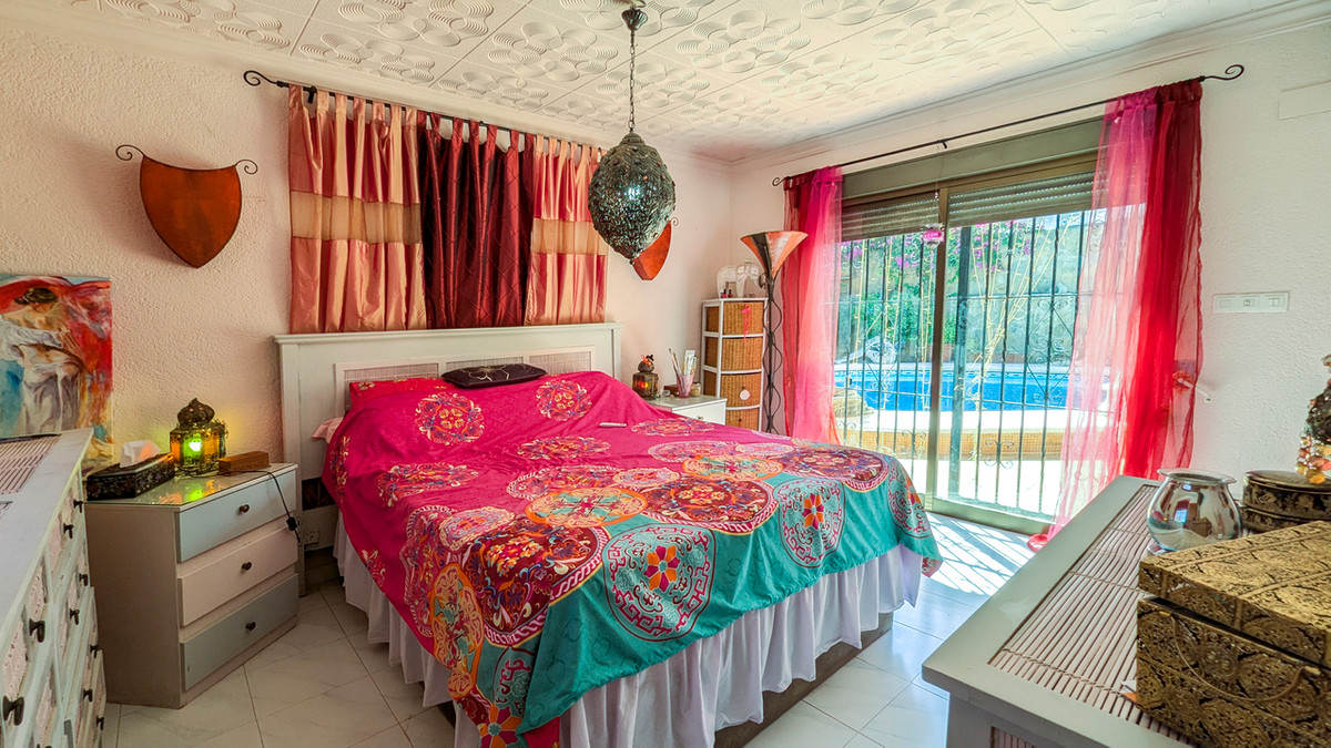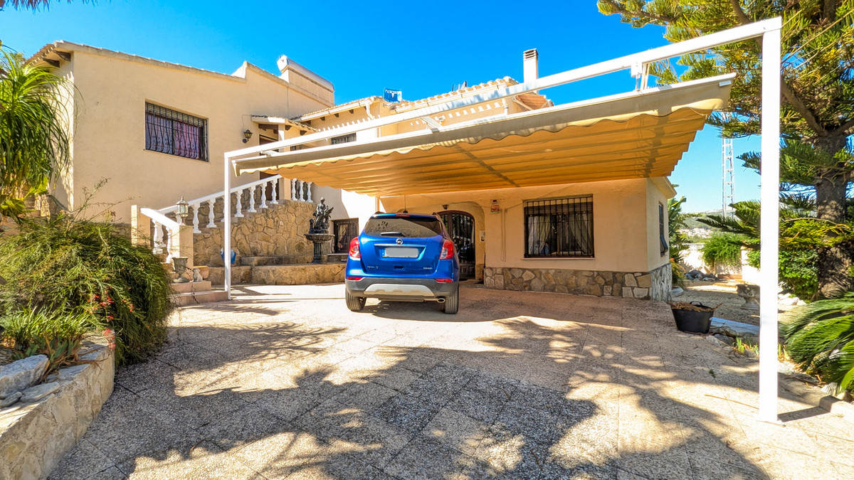 This impressive 4 bed 3 bath villa has been maintained to the highest levels by the current owner, who's artistic talent is shown throughout the property. Set in a quiet position on an urbanisation just a short walk to the shops, bars, restaurants and services offered by Orba, the popular village at the head of the Orba Valley, well known for its orange groves.The property is accessed by sliding electric gates which open to a large driveway with space to park several cars and an awning topped carport. The gardens that surround the property are mature with a variety of bushes and trees. A few stairs take you to the front door of the property which opens to an L shaped hallway. To the left of the front door is the master bedroom with a window overlooking the valley on one side and sliding doors that access the pool terrace to the other. This master bedroom benefits from a good size dressing room with built in wardrobes which opens to an ensuite bathroom that has a bath with shower over it. The first leg of the hallway takes us to a good-sized dining area that has access to the rear terrace, pool and several covered seating and dining options. It is also open to the large kitchen which benefits from high quality fittings and a large central island and a wood burner. Off the kitchen we find a small utility kitchenette and a west facing terrace ideal to enjoy a shaded breakfast. The rear terrace is extremely private and benefits from a kidney shaped pool, a covered hot tub, pool shower and mature trees and bushes that offer a haven of peace. There is also a large, covered terrace that offers large seating and dining areas. There is also a large Balinese style gazebo that offers an outdoor lounge overlooking the pool and views beside the house over the brick BBQ to the mountains the other side of the valley.The second leg of the hallway takes us to a guest double bedroom with built in wardrobes, a separate shower room and then to the good-sized living room which offers views over the valley, a second wood burner and sliding door access to an uncovered dining terrace that offers spectacular views over the orange groves, the valley and on the mountains surrounding the valley. From here a spiral staircase gives access to the lower level of the property. At the base of the staircase is a lounge area which has access to the covered parking to offer independent access. There is a bedroom to one side and to the other room currently used as an artist's studio and that also has a bed. The lower floor extends to a kitchenette, a shower room and a storeroom which has connections for a laundry and also a wash sink.As it is built on the edge of the urbanisation, it offers fantastic open views over the valley, and due its position on a curve in the road it is not really overlooked by the neighbouring properties. It also benefits from a dual solar system, one for electric power and the other to run the hot water. Therefore, energy consumption is very low. This is a property that appeals to the heart and the head, so please contact us to arrange a viewing.