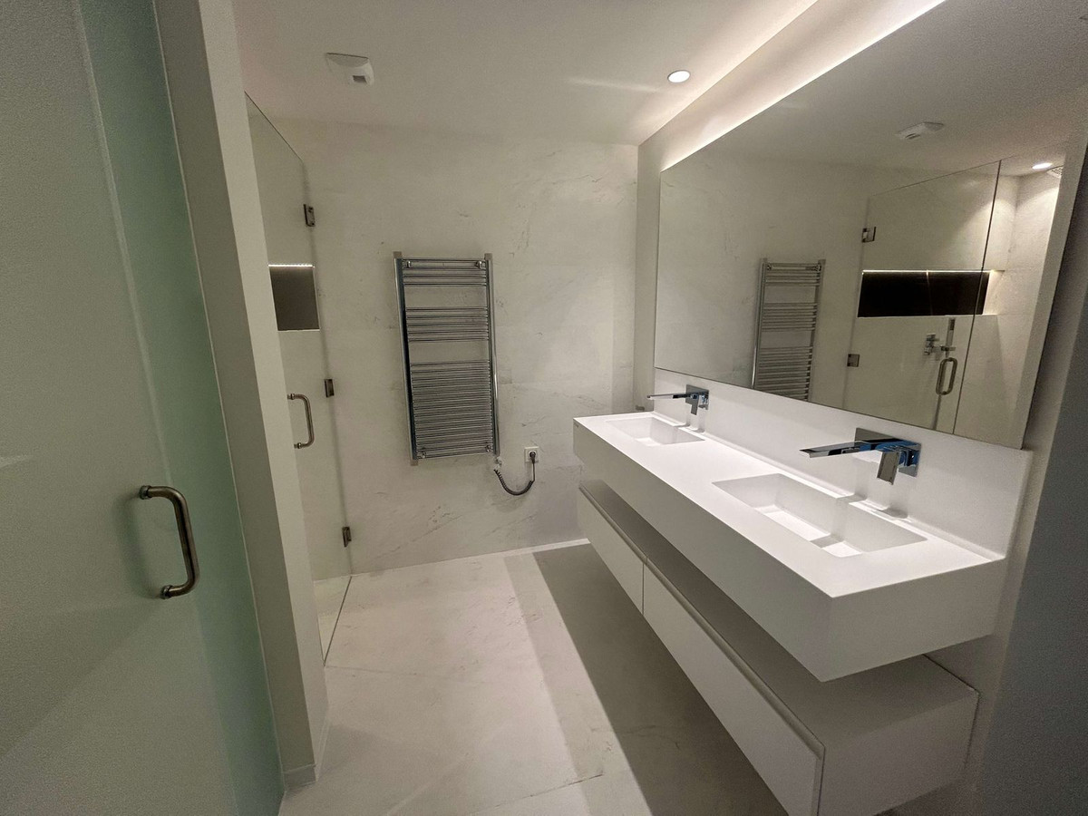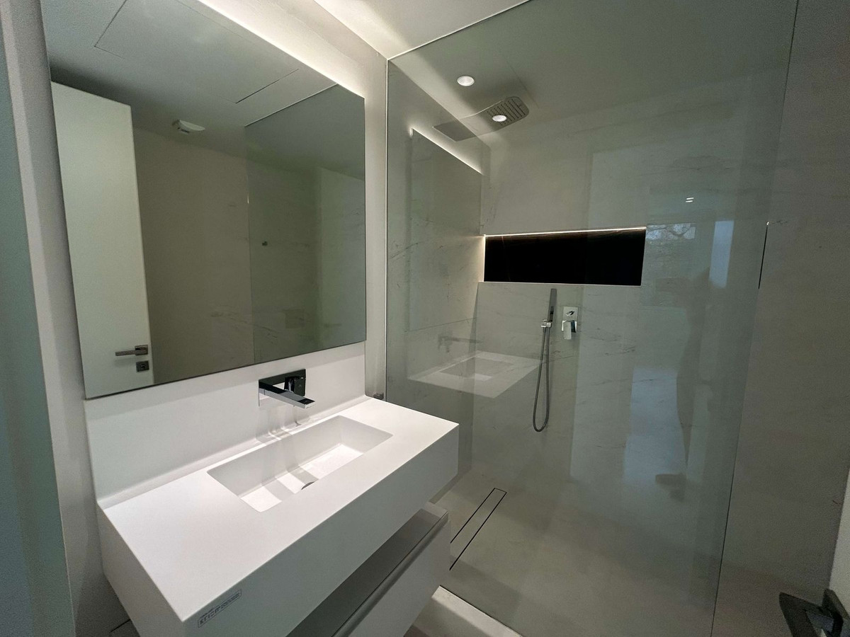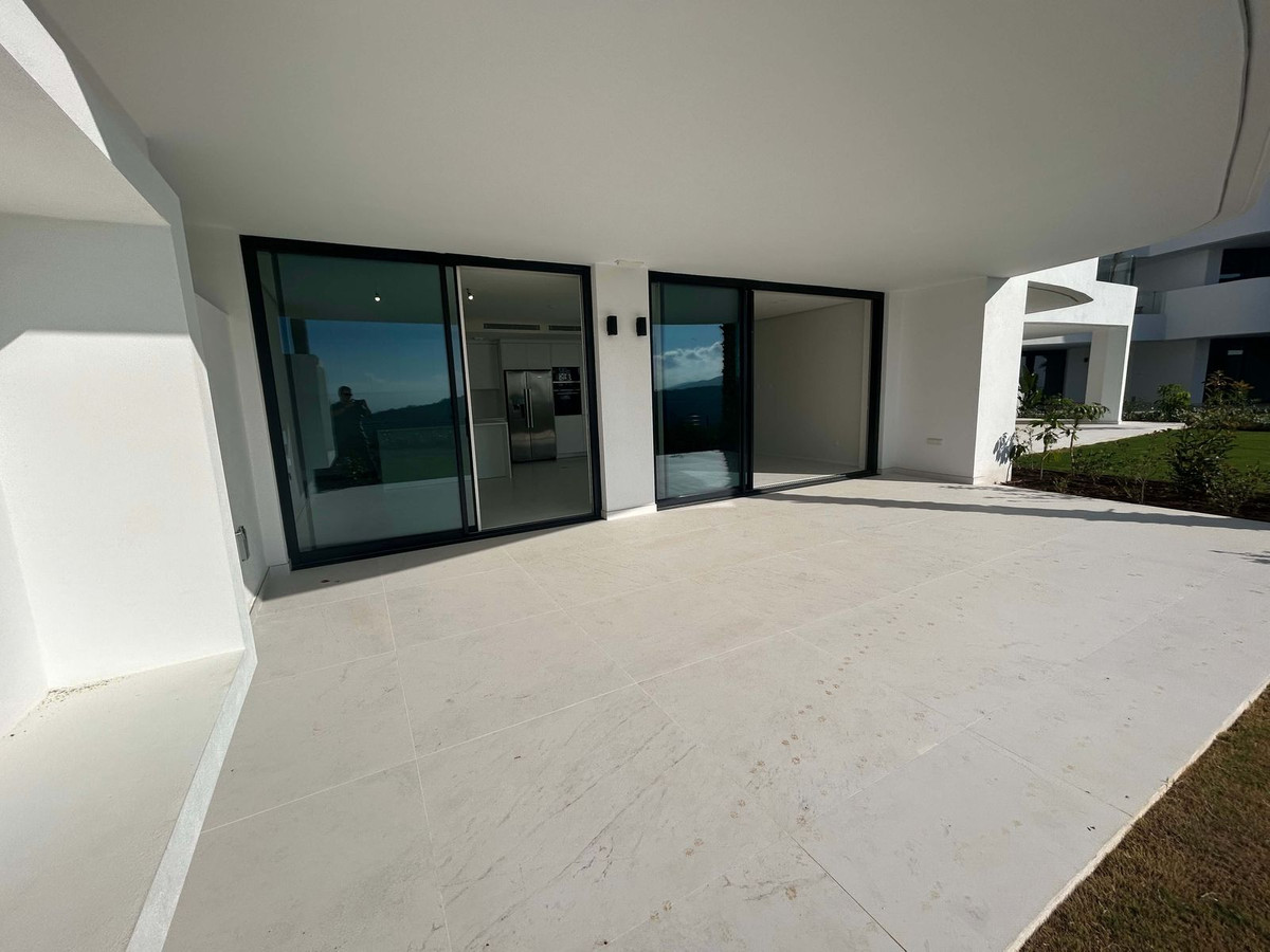 2 bedroom apartment available with southern exposure. This apartment features an open layout where the kitchen and living room open onto the terrace and you can enjoy maximum views from these areas. Moreover, the terrace is also extended by 73 m2 of private garden. The master bedroom has an en-suite dressing room and bathroom. There is also a second bathroom for the guest bedroom. Like all apartments at here, this unit is finished to a very high standard.