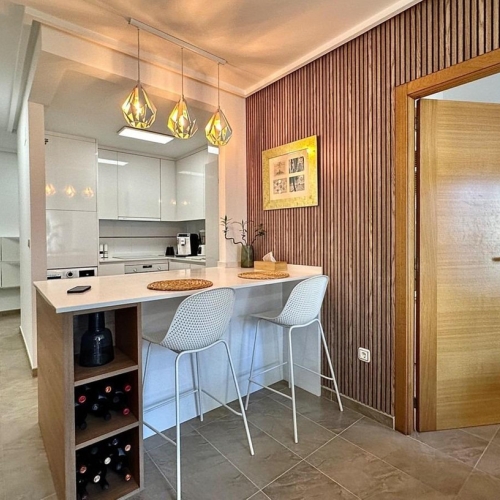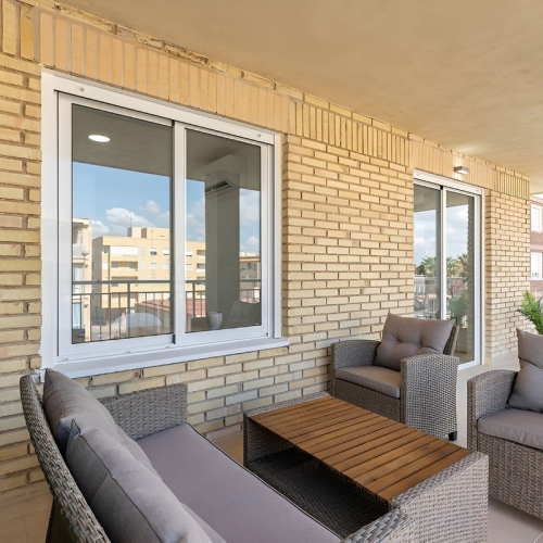 Torrevieja Avda de la Libertad, 1st floor apartment in front of the new port shopping centre with unobstructed views and fully renovated, ideal for living all year round or making it profitable. The house has 110 m2 with 3 bedrooms (1 of them en suite), 2 bathrooms, large independent kitchen and large living room, it has a chill out patio, the house is sold furnished and with air conditioning.