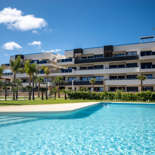 The complex is made up of 144 luxury apartments with large terraces. The total of 144 homes is divided into 10 blocks that in turn have a ground floor, first floor, second floor and penthouses with a terrace and private solarium. Each one with its individual elevator.