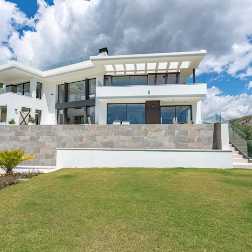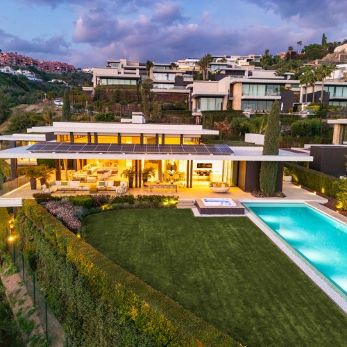 Villa Mika is a contemporary villa for sale in La Quinta. With a south-facing orientation, the villa captures panoramic views that sweep from the majestic La Concha Mountain across the Mediterranean to Gibraltar, ensuring that every sunrise and sunset instills a tranquil sense.