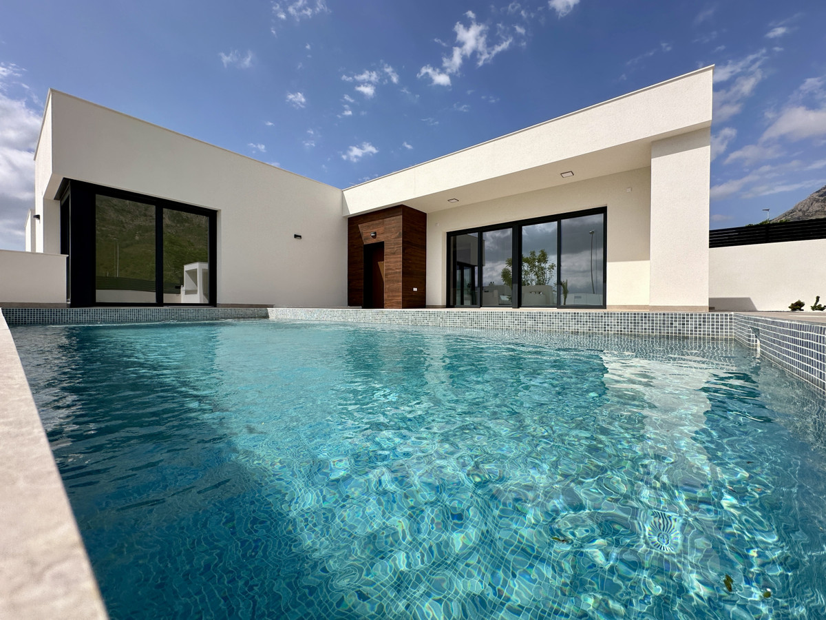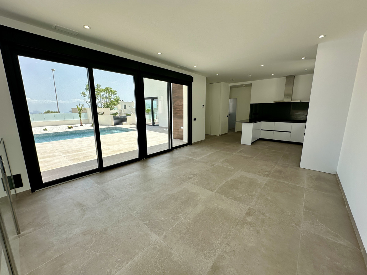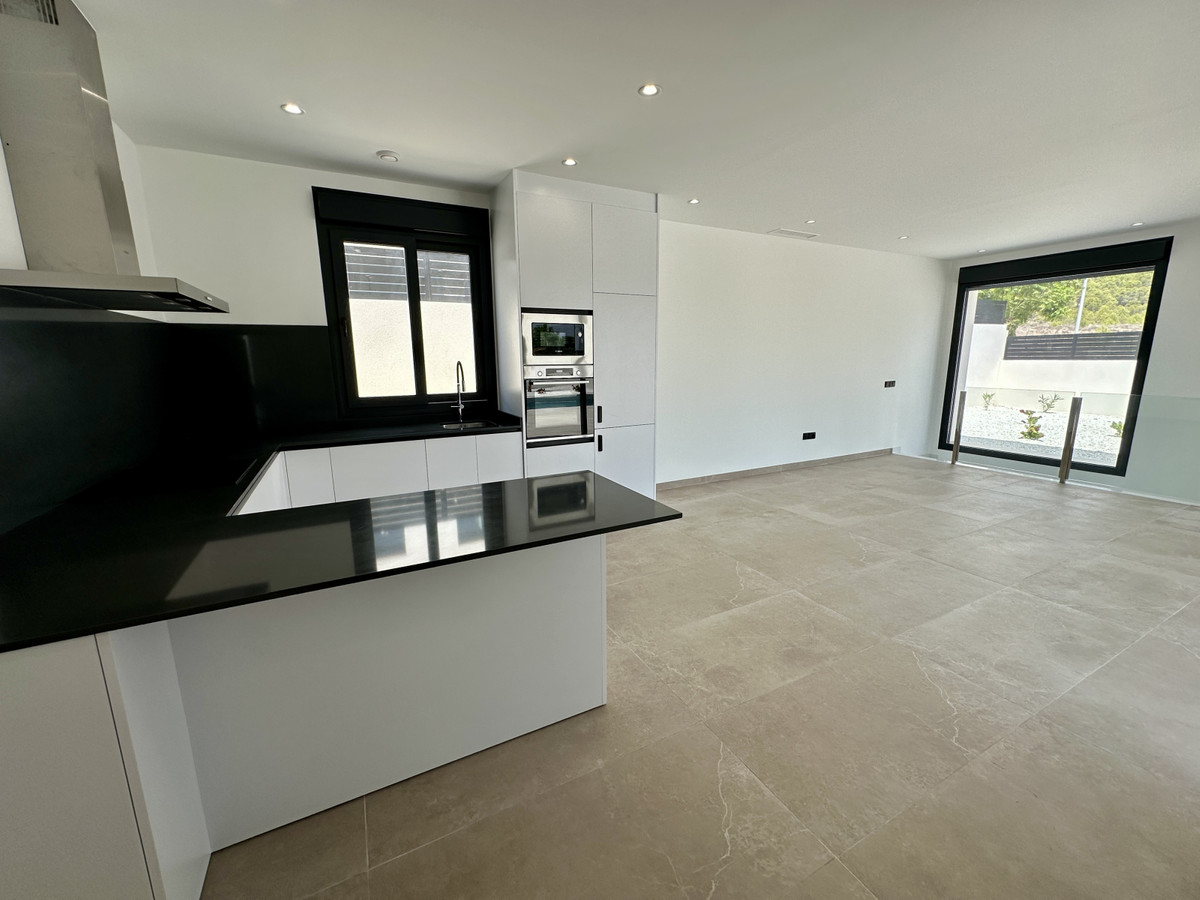 A single-family house distributed on ground floor and basement, with a total size of 220 square meters, with 430 square meters corner plot, located in "La Alberca" neighbourhood, in Polop de la Marina. Its "L" design allows a great use of sunny hours and the fantastic Mediterranean climate, providing light in all rooms of the house and lovely views to the mountains.