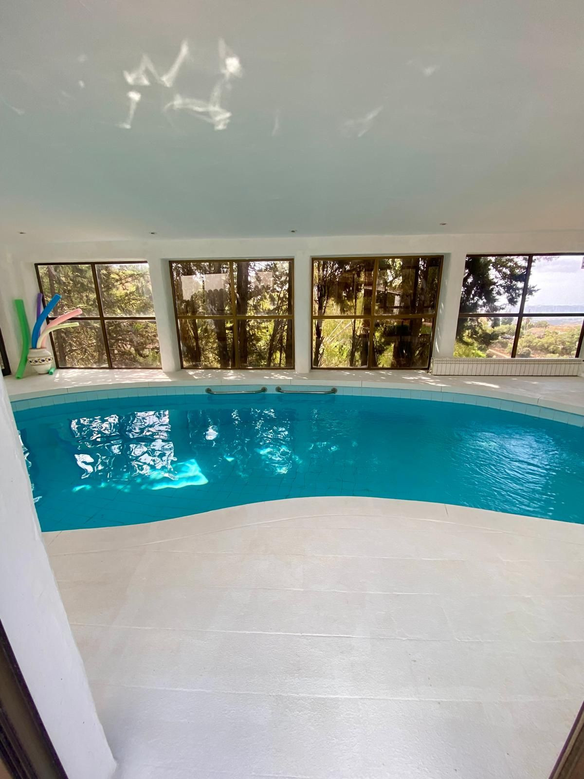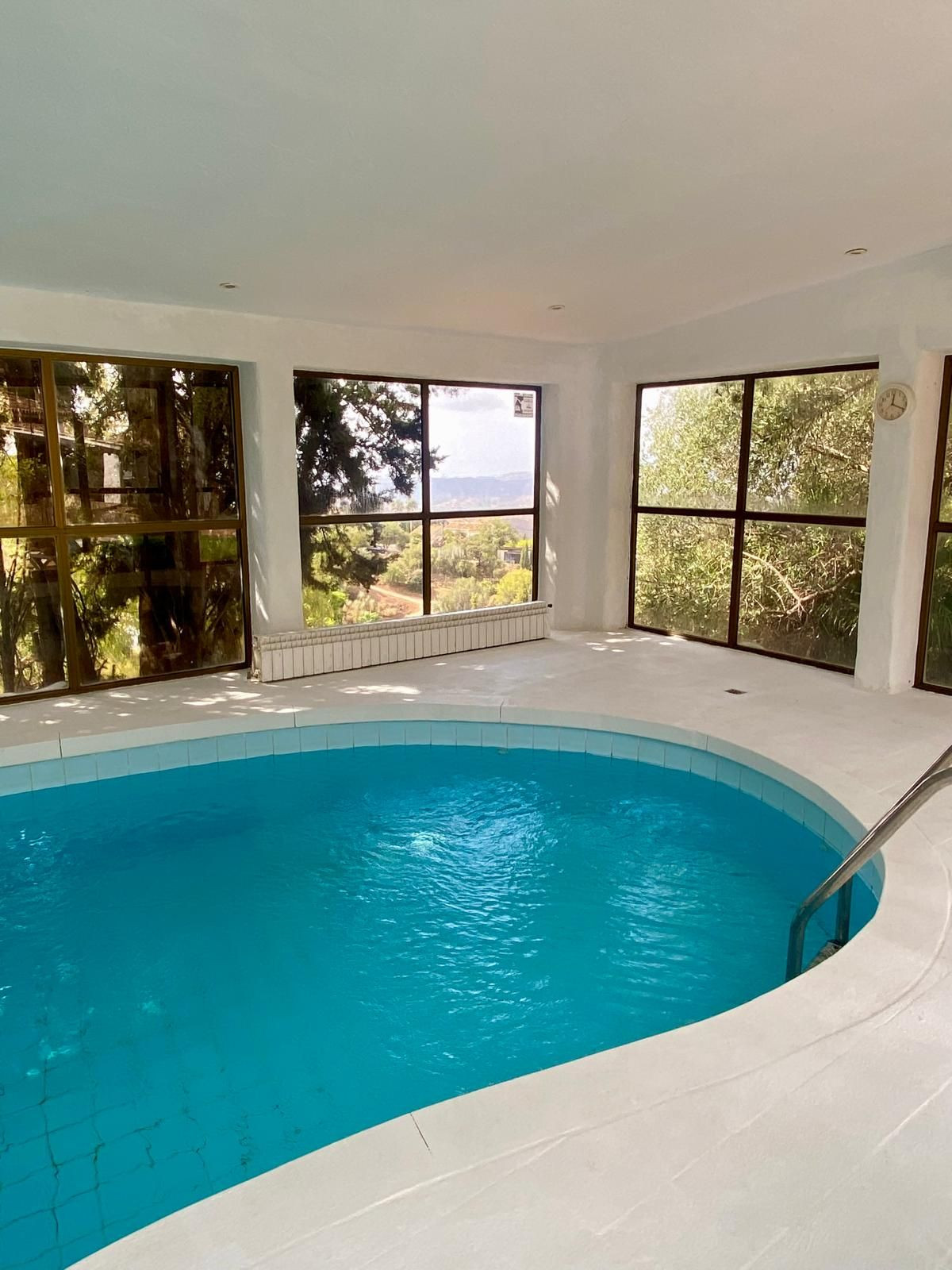 There are another 2 bedrooms in the guest house which also has another bathroom. The finca also has central heating in most of the rooms, when needed. There are also solar panels on the roof of the indoor pool area. The indoor pool can be enjoyed during the warmer months with windows that open from all sides to enjoy the fabulous views and there is also a shower and a jacuzzi enjoy. There is plenty of space to also use this area as a gym.