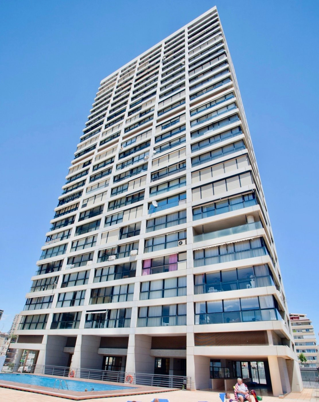 Fantastic luxury flat with 135 m² of living space. Consists of 3 bedrooms (1 suite with 1,35 m. bed and the others with 2 beds of 90 cm. each one and built-in wardrobes in all of them), 2 complete bathrooms, one with bathtub and the other one with shower with anti-slip floor, living-dining room of 38 m. (with sea views), large fully fitted kitchen with all the necessary appliances and utensils, high quality black marble worktops. The awnings and blinds are automated, and it also has a water softener that eliminates the lime of the water in Benidorm, from the interior of the flat. 2 covered terraces of 4 m2 each. The building has 4 lifts and a freight lift, 24 hour concierge, video entry phone, a large swimming pool with solarium facing the sea, and on each floor 1 room for waste disposal. It is prepared for disabled people, with access adapted for people with reduced mobility. Very close to all services and the centre.