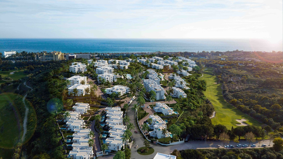 Within the upscale private resort, you can enjoy attractive communal facilities for your relaxation and fitness. These include extensive, Mediterranean gardens with 4 large outdoor pools, sun loungers and chill-out beds, an outdoor lounge bar area, a spa with sauna, steam bath, indoor swimming pool and fitness studio, as well as a coffee shop and co-working lounge.