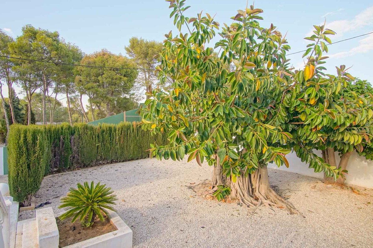 Discover luxury and comfort in this charming detached villa, located in the prestigious neighbourhood of Las Rotas, Dénia. This property is located on an urban plot of 1,229 m², with an adjacent protected plot of 4,338 m² belonging to the Montgó Natural Park, totalling around 5,500 m². This privileged location offers incomparable natural surroundings, with partial views of the sea and the impressive Montgó. The exterior of the house is surrounded by several terraces and gardens that provide a Mediterranean charm, with a large private pool perfect for enjoying the sunny weather. The barbecue area is ideal for family and social gatherings, while the fronton court adds a sporting touch to this beautiful property. In addition, the garden has numerous fruit trees and sitting areas for relaxing moments.