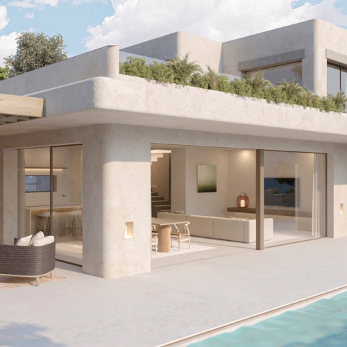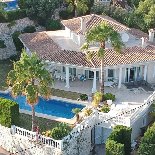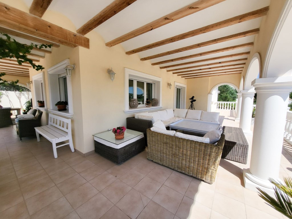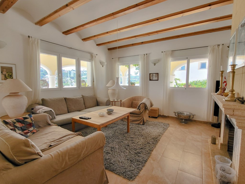 This traditional Spanish villa is located less than 3 kilometers from the center and the main beach of Moraira and can be reached on foot because of the almost flat roads to it. The villa is distributed over 3 floors. On the general living area there is a spacious lounge with dining area, a fully equipped modern kitchen, 2 double bedrooms and a bathroom. Both the living room and the kitchen provide access to the spacious covered terrace. In addition, there is a barbeque area on the other side of the house. On the top floor is the master bedroom with bathroom en suite which also has access to a large private balcony. On the ground floor there is a second lounge with a double bedroom with bathroom en suite, making it extremely suitable as a guest house. The terrace with swimming pool is also located on the first floor, giving it a lot of privacy.
