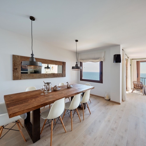 Duplex penthouse with 3 bedrooms and 3 bathrooms in Mansions, featuring stunning panoramic views of the mountains and the golf course from the entire terrace. Spacious living-dining room with direct access to the southwest-facing terrace, ensuring excellent natural light throughout the day. Fully equipped and family size kitchen. Access to the garage, which includes two parking spaces and two storage rooms, is conveniently provided by an elevator.