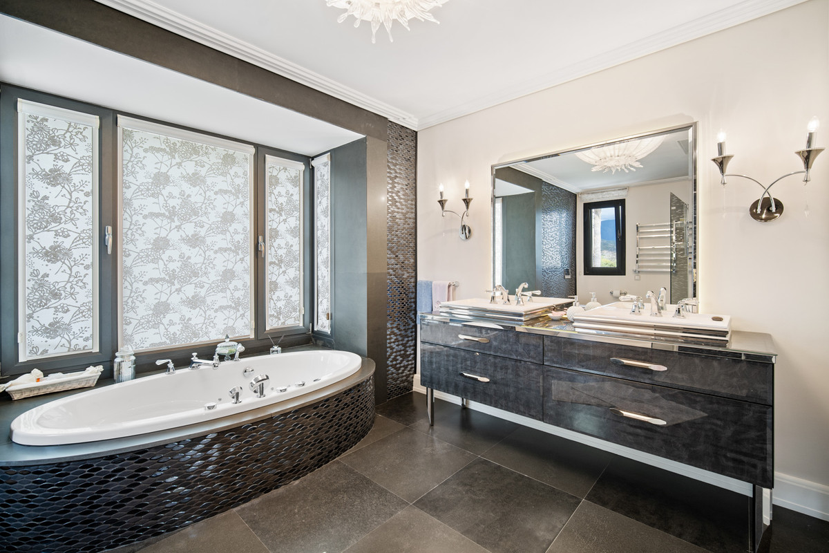 Overetagen har tre soveværelser, hver med et-suite badeværelse, og en solrig terrasse med delvis havudsigt. Kælderen består af to ekstra soveværelser med badeværelser, et spilrum, et vaskerirum, en sauna, et tyrkisk bad og en garage med plads til fire biler. Huset har også sin egen elevator.