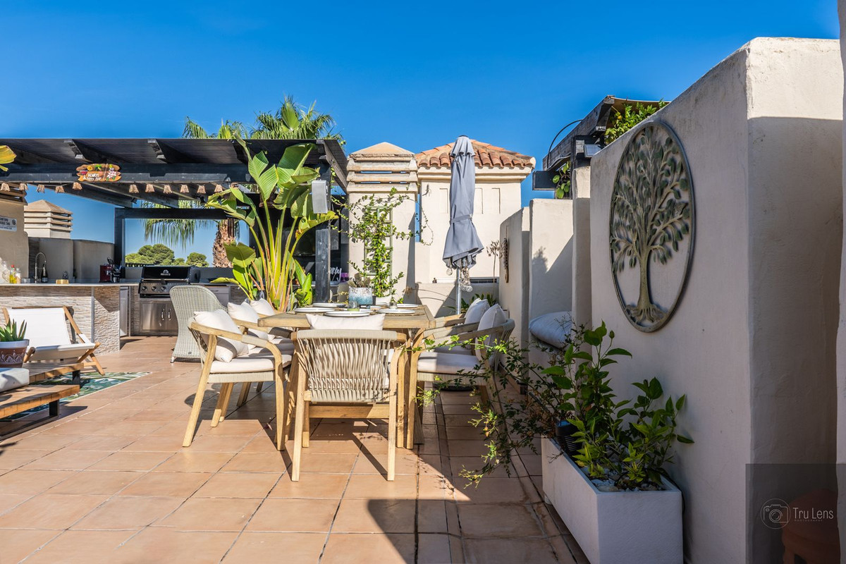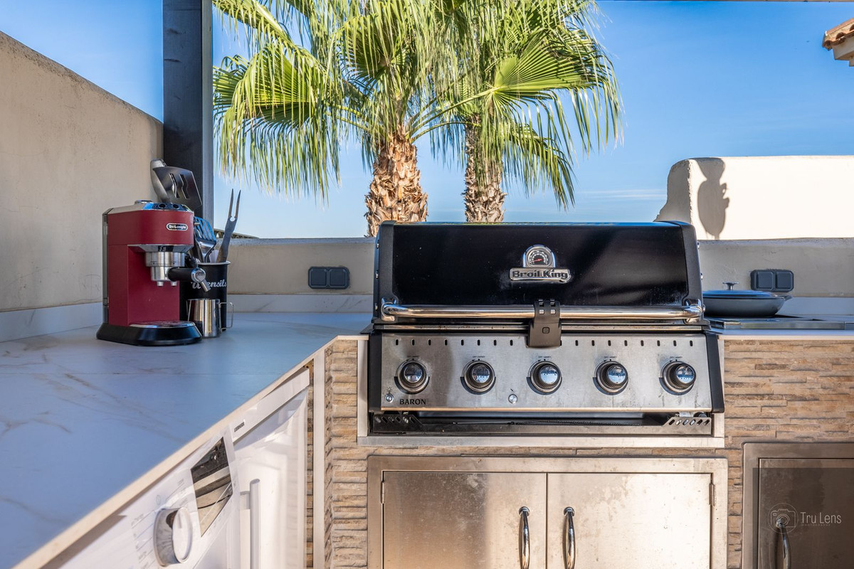 We are pleased to present this beautifully updated 2 Bed, 2 Bath Penthouse Apartment on Phase 1 of Roda Golf, featuring a remarkable rooftop garden complete with a BBQ kitchen area. This outdoor space is designed for enjoyable living, equipped with a built-in BBQ, marble countertops, hot and cold water, a fridge/freezer, and a wine fridge, along with a TV and Bose sound system, making it ideal for entertaining. You can relish in panoramic views, witnessing approximately 300 days of stunning sunrises over the Mar Menor and sunsets over the mountains.