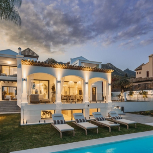 The lower level provides additional versatility, including an extra bedroom suite and ample space for a gym, home cinema, or games room. A three-car underground garage, advanced home automation, central heating, and air conditioning ensure year-round comfort. Located close to top-tier services and amenities, with 24-hour security, this villa offers the ultimate in luxury living on Marbella's Golden Mile.
