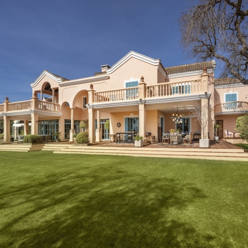 Beautiful, very well-maintained 3 bedroomed villa with a large covered terrace of 106 m2 and a very pretty garden in the sought after 24 hour security gated San Roque Club. The property is within a large plot so could be easily extended. The villa also comes with a heated pool and cover. The villa benefits from being very bright and airy and is ideal as a beautiful holiday or permanent home. Heating for each room is done highly efficiently by marble panels mounted on the wall.