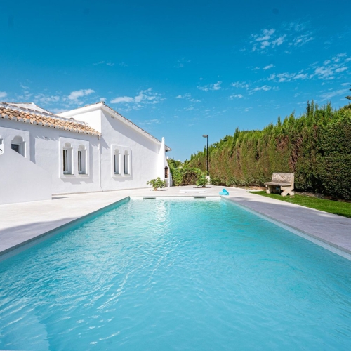 The villa is surrounded by a private garden, and features a private swimming pool, creating the perfect outdoor oasis.