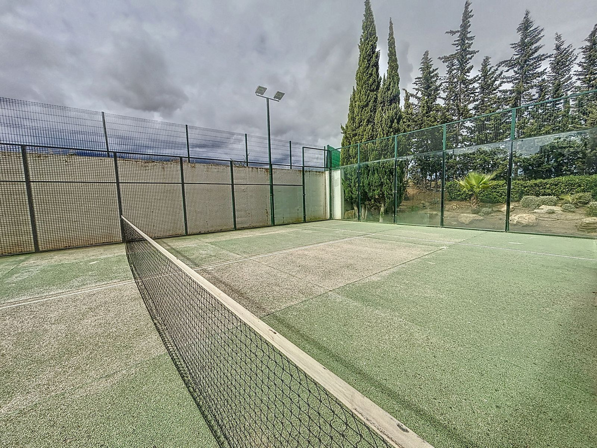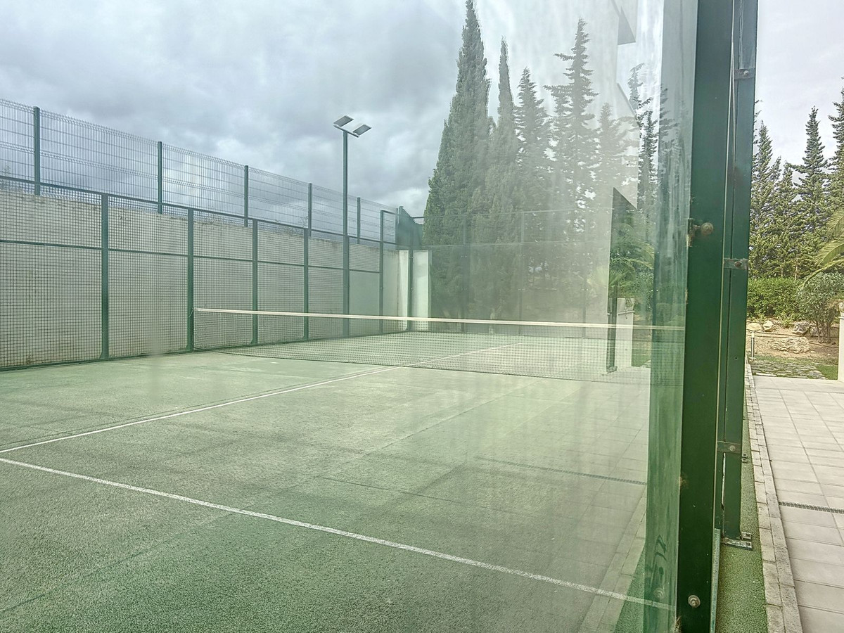 The complex features beautiful communal areas, including landscaped gardens, a pool, and a paddle tennis court!