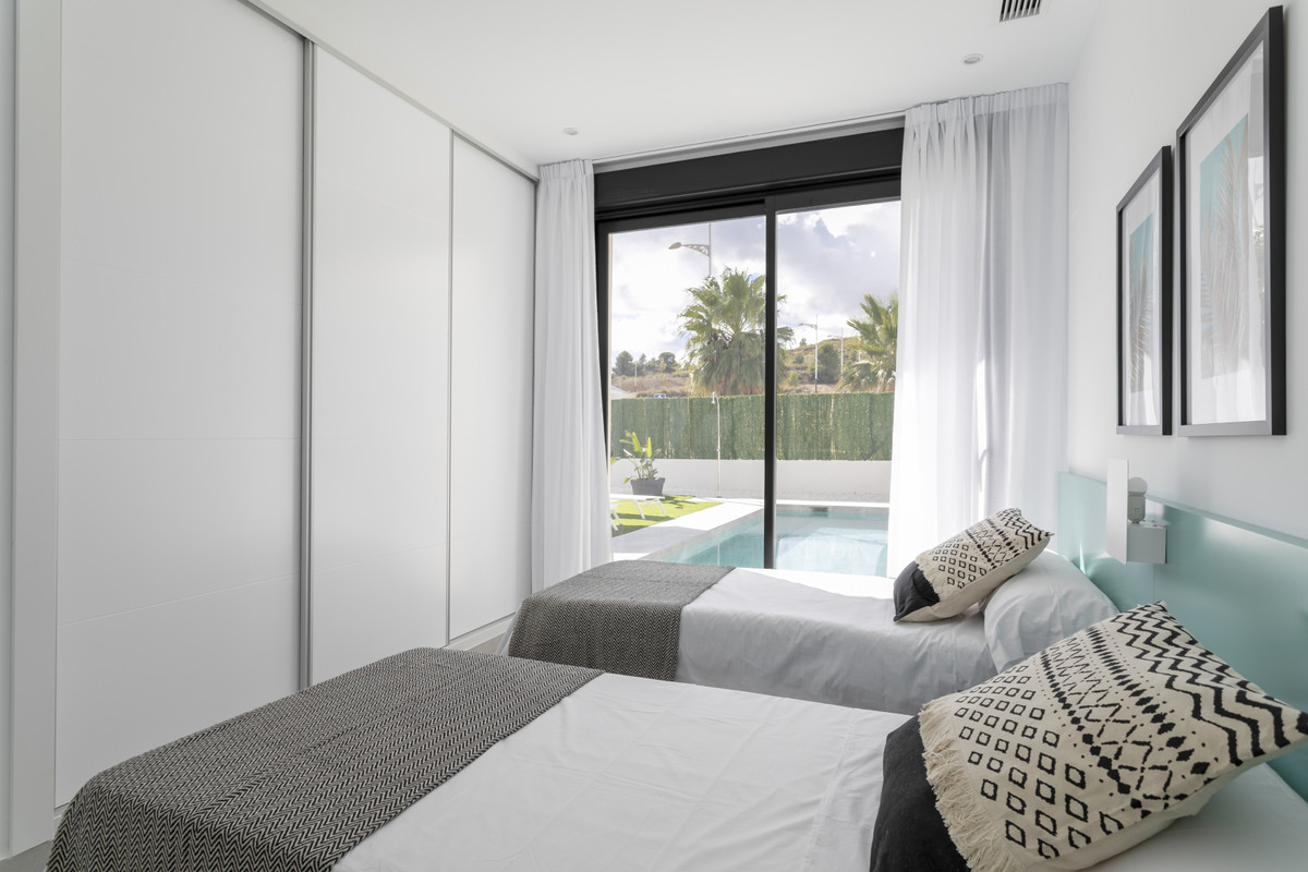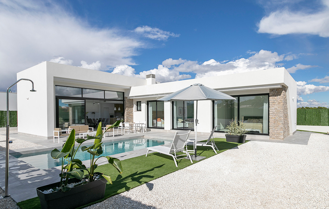 Moderne fritstående villaer på én etage med privat pool, 3 soveværelser, 2 badeværelser og vaskerum på grunde på 550 m².