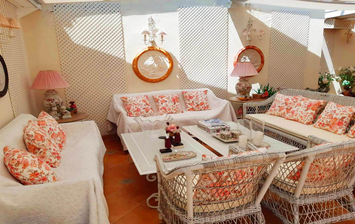 On the upper floor we have the master bedroom with en-suite bathroom and access to a terrace with sea views, along with a further 2 bedrooms with access to a shared side terrace and another bathroom. The property has yet another floor that leads to a small room with access to a solarium.