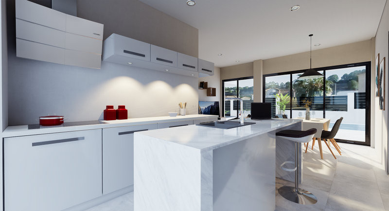 Et lille projekt med kun 5 villaer, alle opført i ét plan med 3 soveværelser og 2 badeværelser. Den åbne stue/spisestue og det fuldt udstyrede køkken har en central køkkenø og udsigt over den private pool. Villaerne ligger på selvstændige grunde fra 300 m². En rummelig tagterrasse er også inkluderet – perfekt til at nyde solen og den smukke udsigt året rundt.