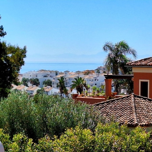 This magnificent semi-detached house is for sale, located in the exclusive Villas del Golf development, in the municipality of Manilva, Málaga. A privileged setting surrounded by nature, golf courses, and just minutes from the sea.