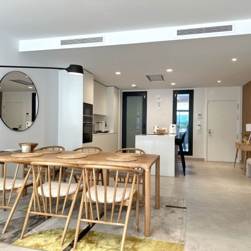 Smuk lejlighed i stueetagen. Smuk udsigt over golfbanen Los Arqueros og havet i baggrunden. Hovedsoveværelse med eget badeværelse med badekar og bruser samt påklædningsværelse. Adgang til terrassen fra stuen og hovedsoveværelset. Direkte adgang til fælles have- og poolarealer fra terrassen. Meget rummelig stue/spisestue, så man kan indrette forskellige miljøer. Udstyret køkken og separat vaskerum.