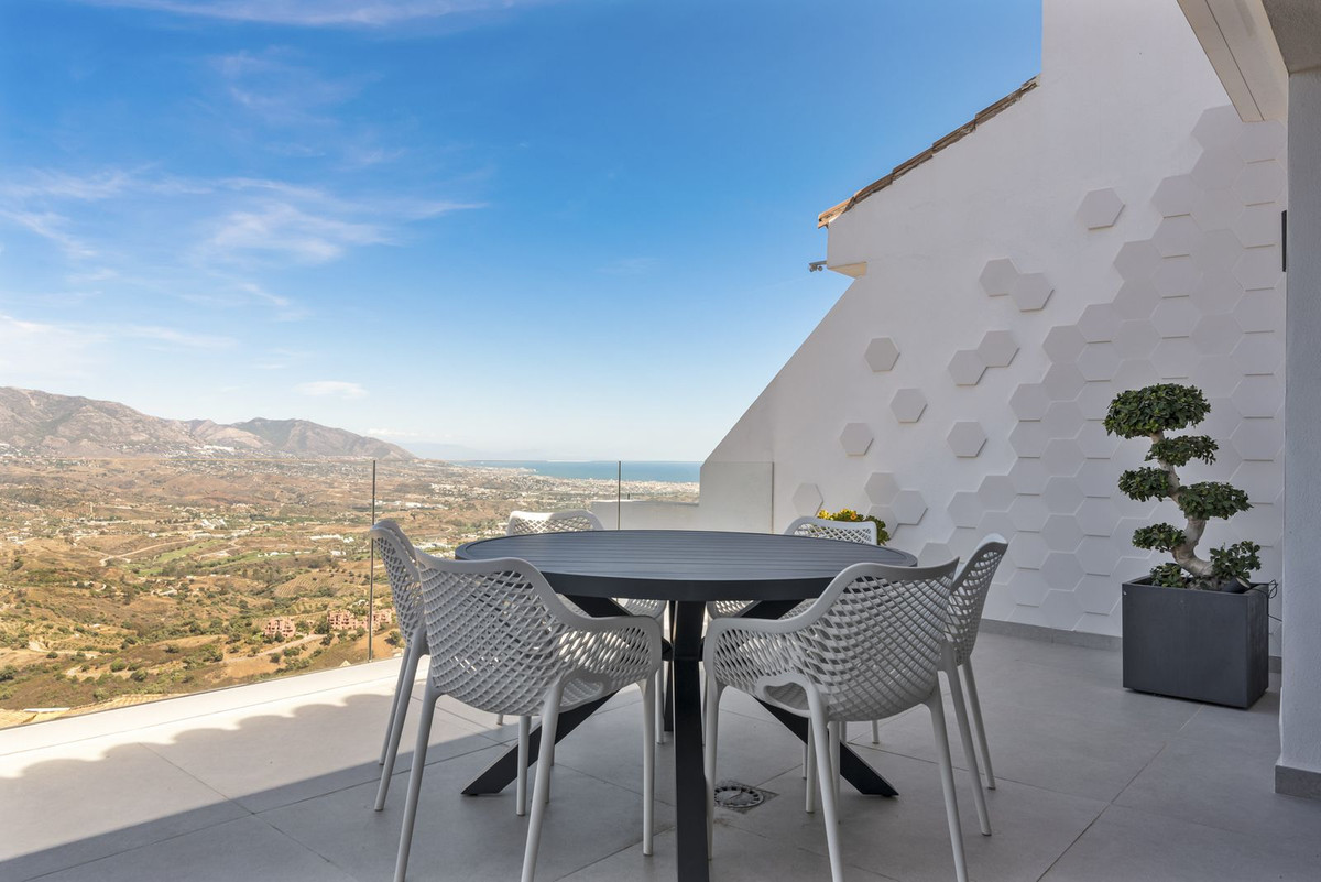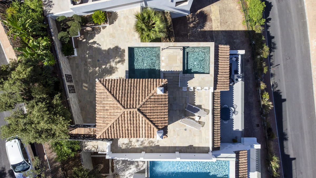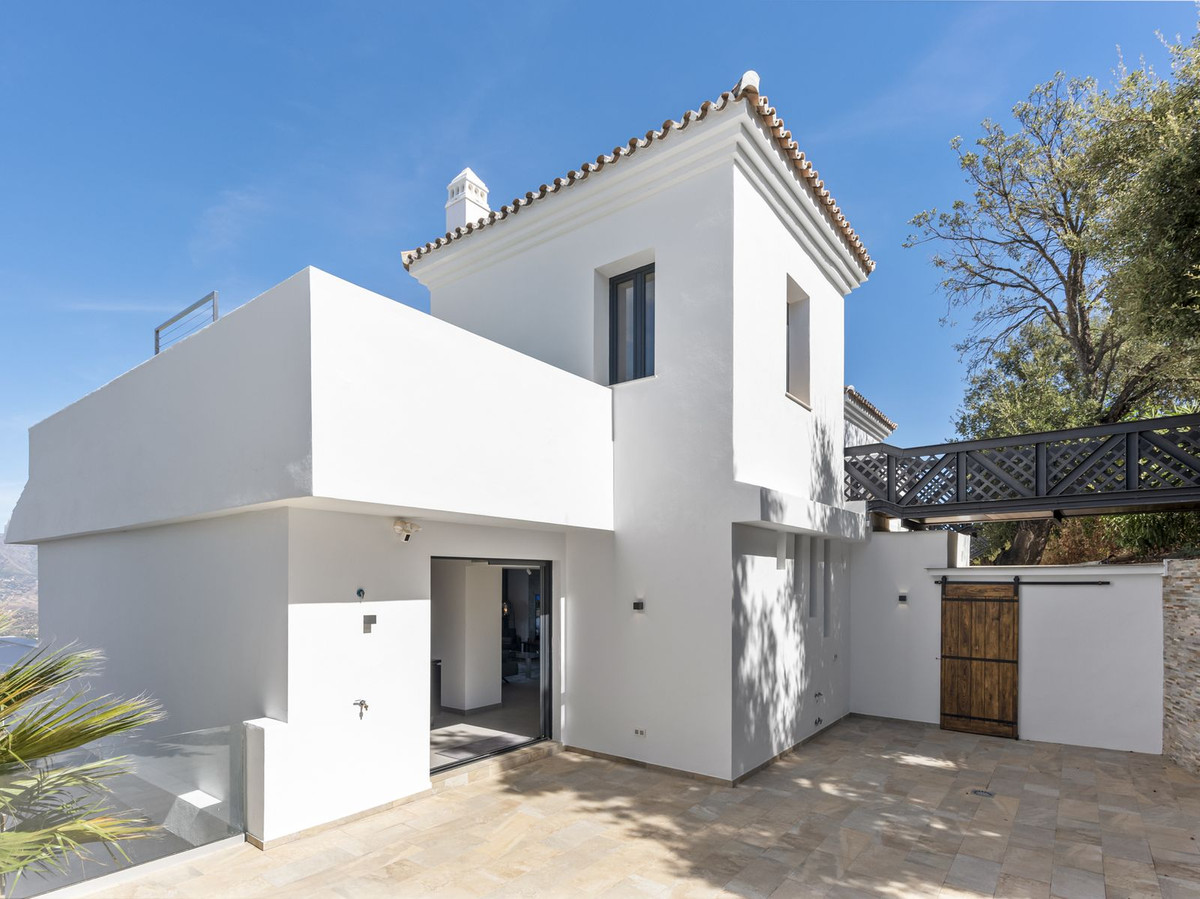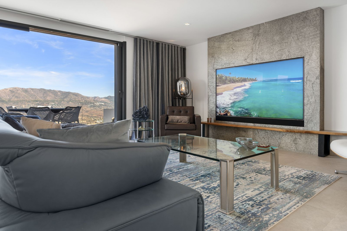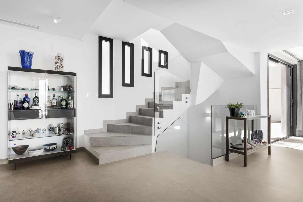 The top level is your personal outdoor oasis. This sun-soaked terrace is designed for relaxation, featuring a jacuzzi, plunge pool, and a bar area. Whether hosting guests or enjoying a quiet evening, the spectacular views of the UNESCO-protected Sierra Alpujata and the charming village of Mijas, sunrise over the Mediterranean in the west, and sunset over the national park ‘Sierra de las Nievas to the east. There's also a guest toilet and a pedestrian bridge providing quick and convenient street access and parking from this level.
