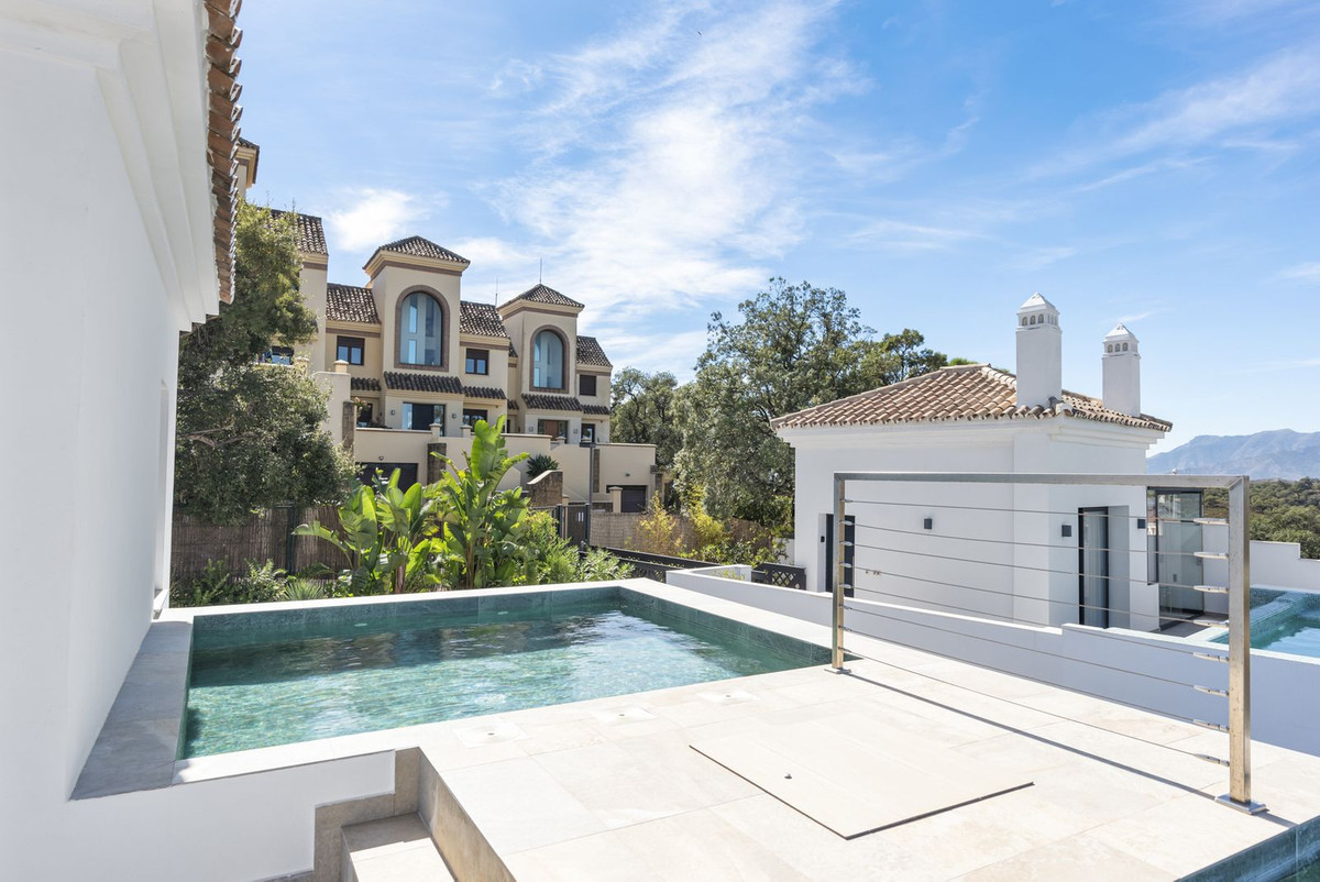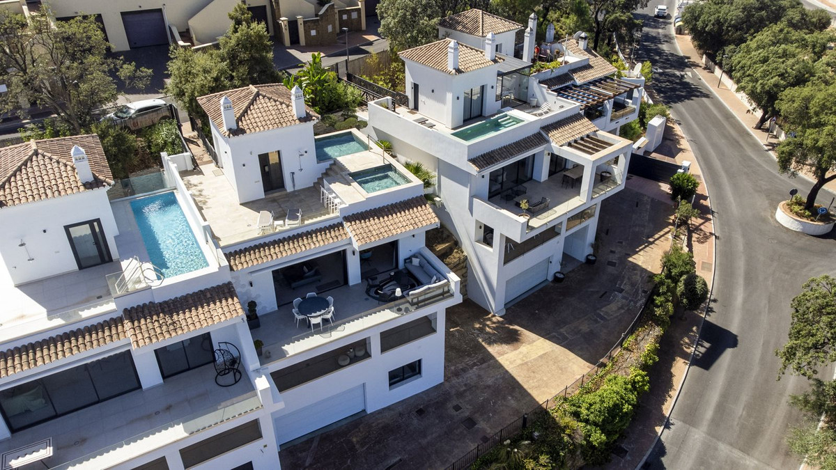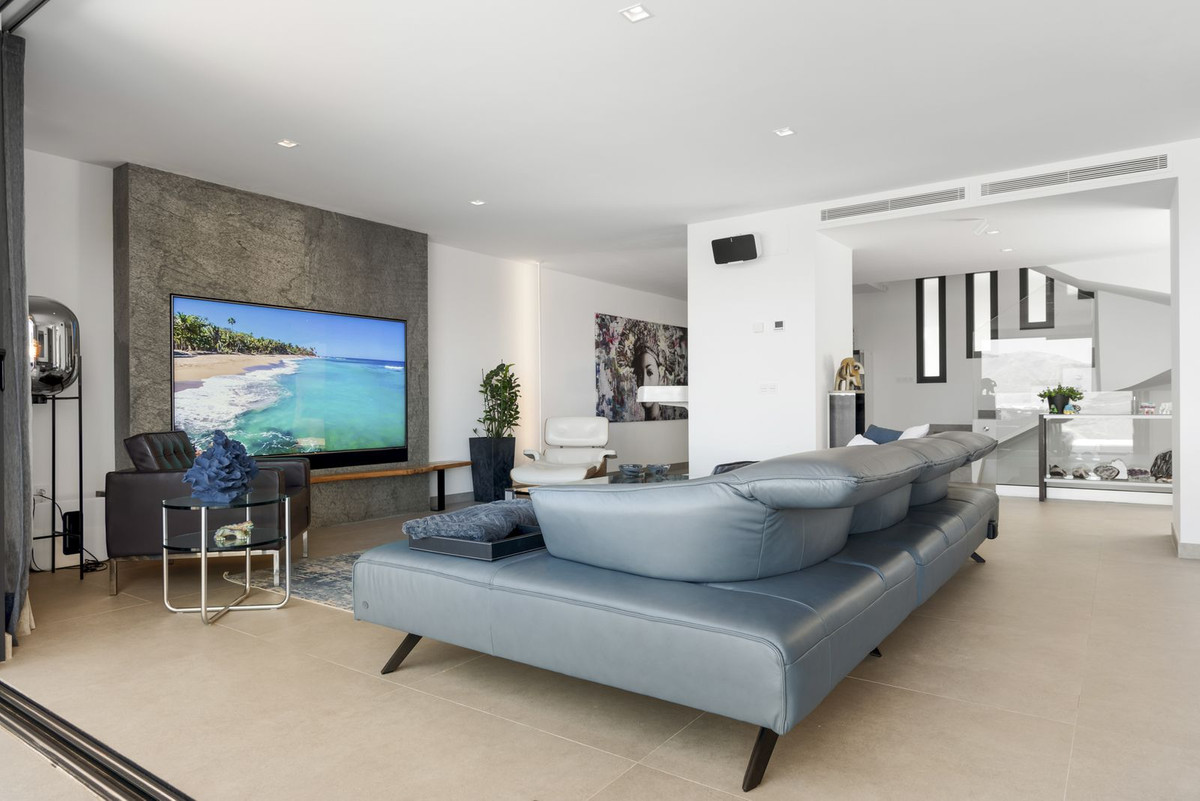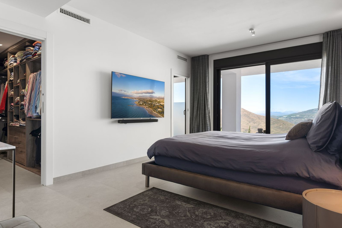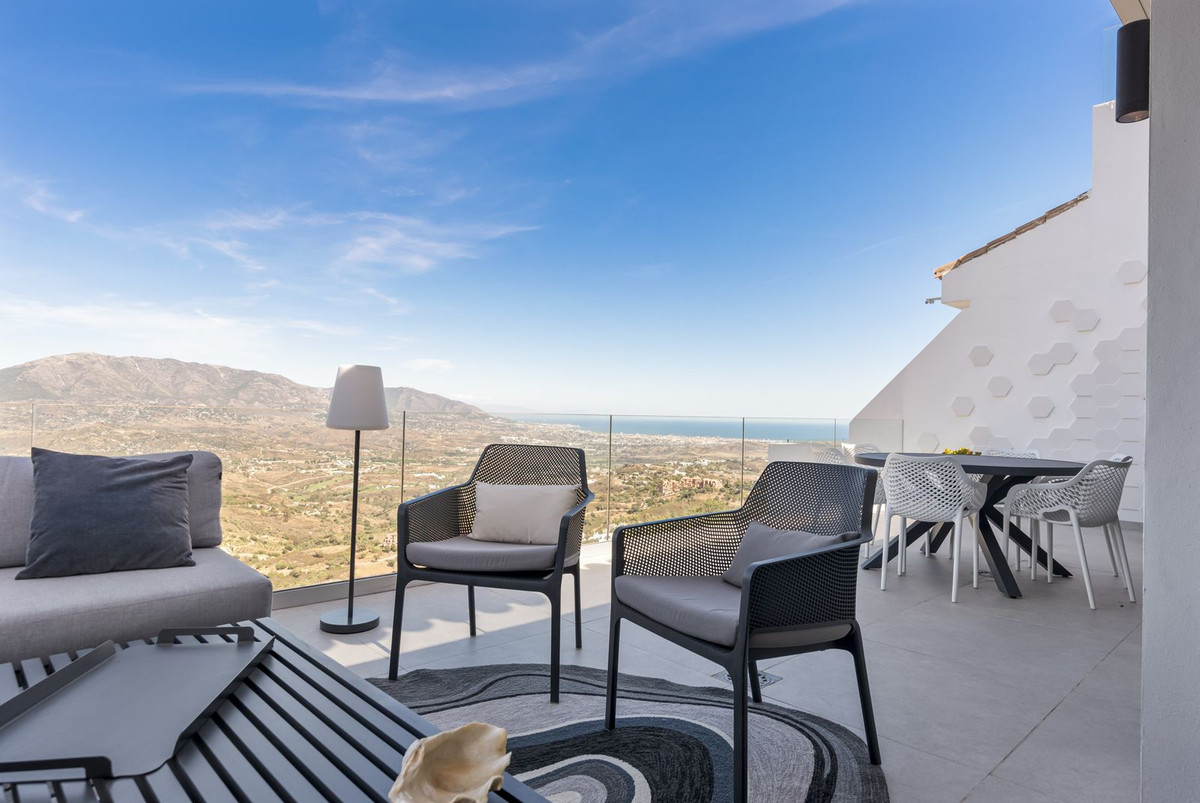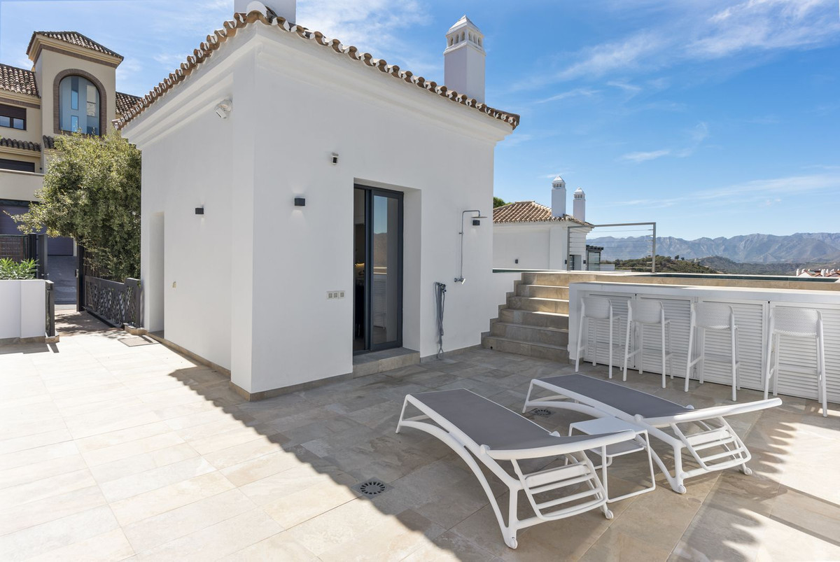 The top level is your personal outdoor oasis. This sun-soaked terrace is designed for relaxation, featuring a jacuzzi, plunge pool, and a bar area. Whether hosting guests or enjoying a quiet evening, the spectacular views of the UNESCO-protected Sierra Alpujata and the charming village of Mijas, sunrise over the Mediterranean in the west, and sunset over the national park ‘Sierra de las Nievas to the east. There's also a guest toilet and a pedestrian bridge providing quick and convenient street access and parking from this level.