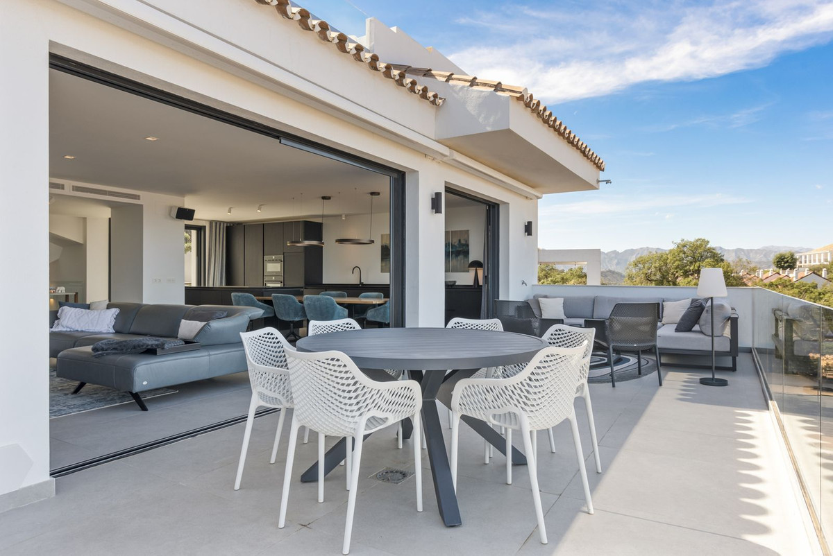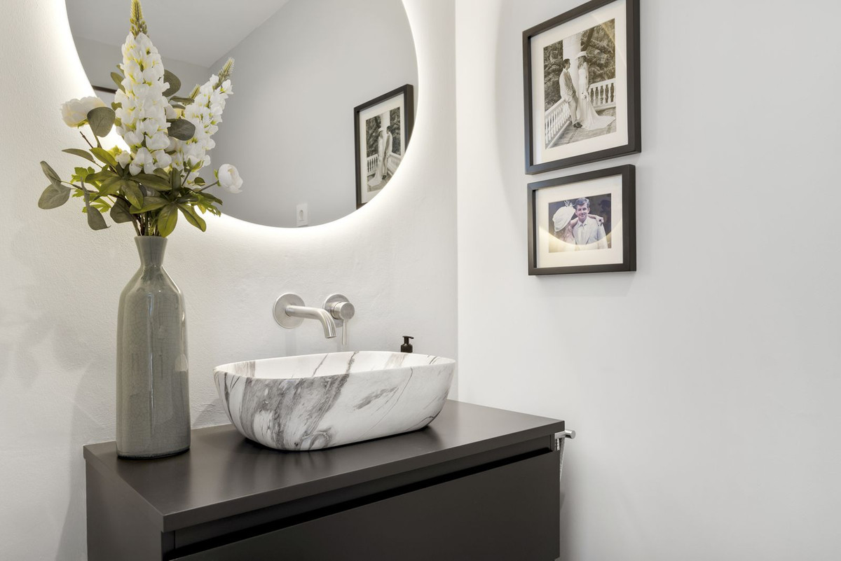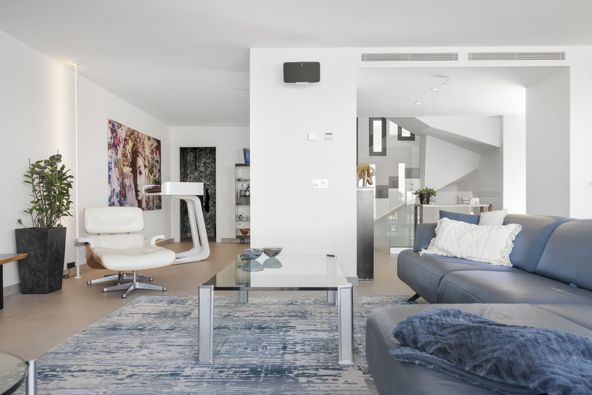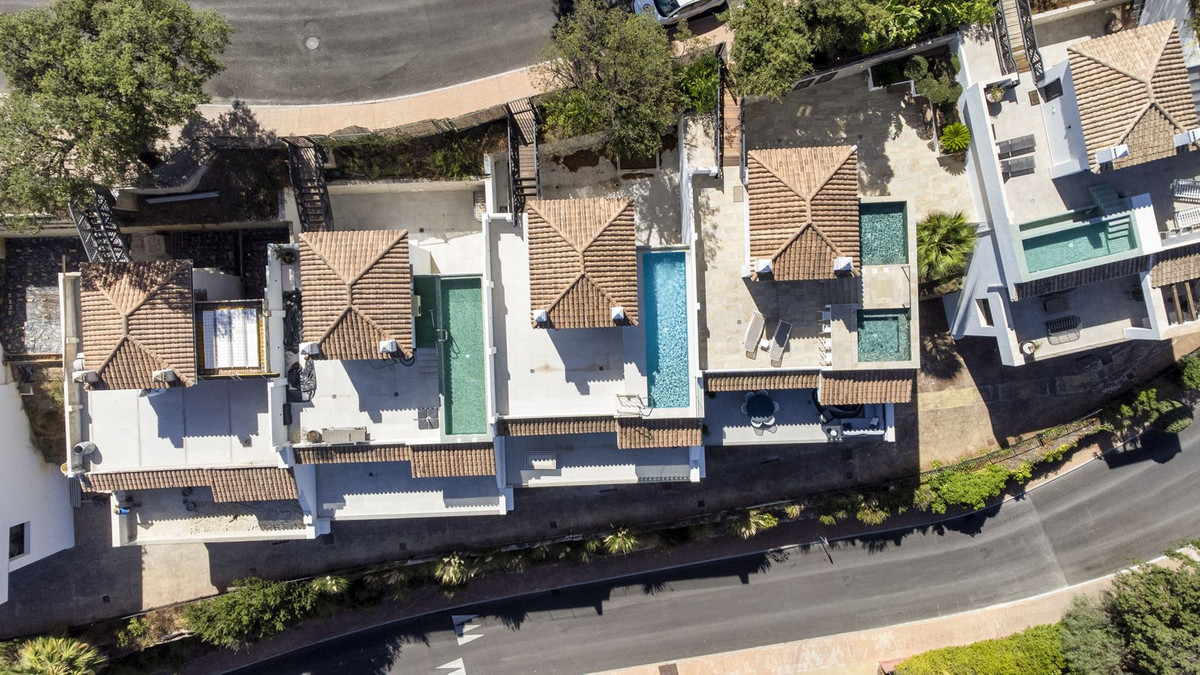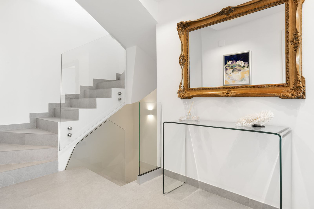 The top level is your personal outdoor oasis. This sun-soaked terrace is designed for relaxation, featuring a jacuzzi, plunge pool, and a bar area. Whether hosting guests or enjoying a quiet evening, the spectacular views of the UNESCO-protected Sierra Alpujata and the charming village of Mijas, sunrise over the Mediterranean in the west, and sunset over the national park ‘Sierra de las Nievas to the east. There's also a guest toilet and a pedestrian bridge providing quick and convenient street access and parking from this level.