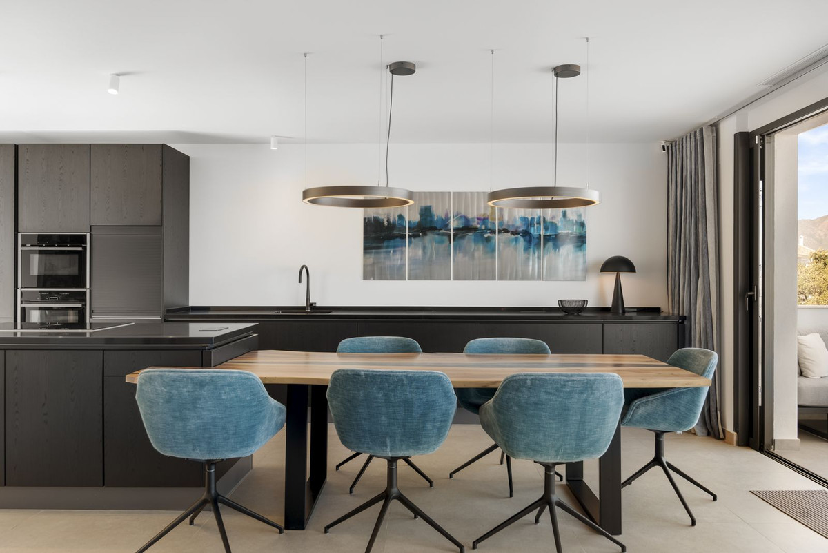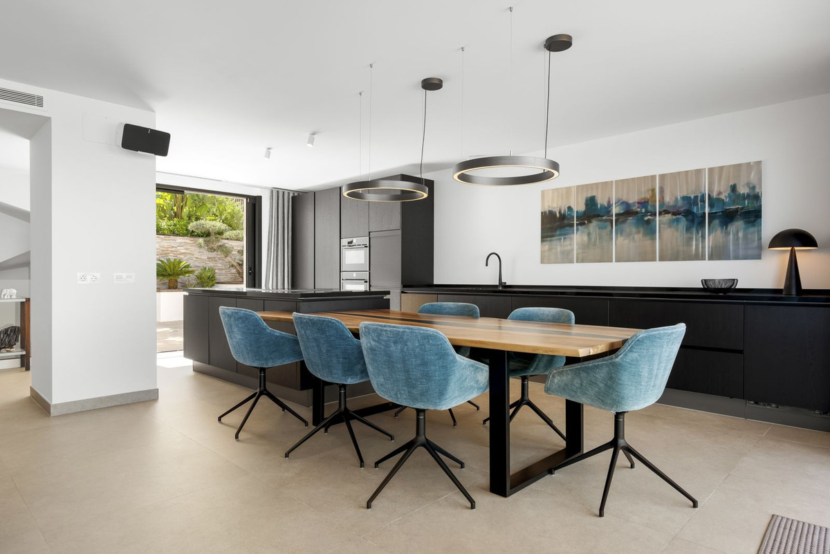 The second floor is an entertainer's dream! The expansive, open-plan kitchen, dining, and living area is the heart of the home. The high-end kitchen boasts top-tier NEFF appliances known for their elegance, quality, and functionality. Floor-to-ceiling glass doors in the living room flood the space with natural light and lead out to a large terrace, blending indoor and outdoor living seamlessly. The terrace features automatic awnings and showcases yet another breathtaking view. Behind the living area, you'll find a hidden gem: a large private patio, beautifully landscaped around a mature olive tree, offering a peaceful retreat.