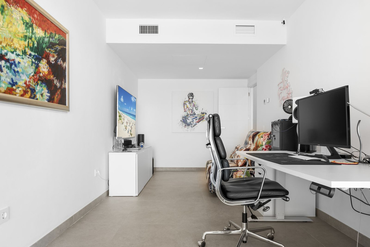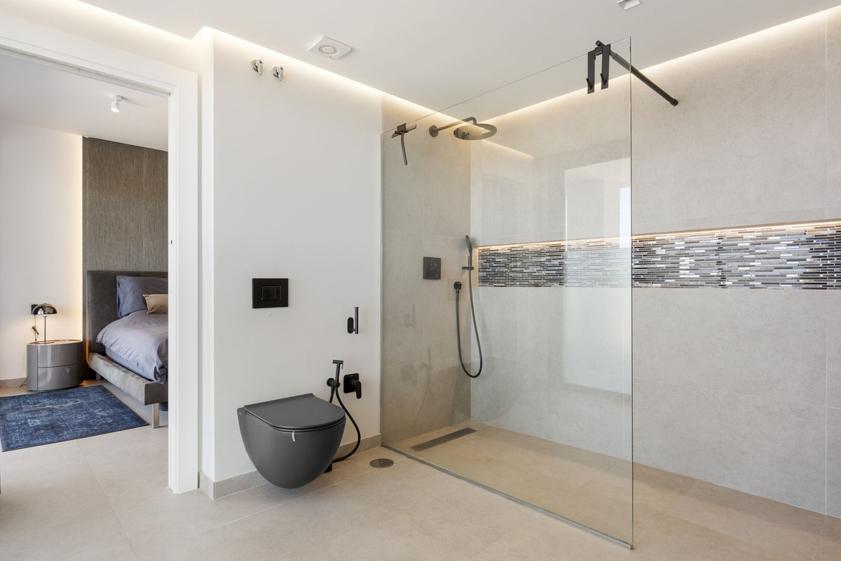 The first floor is home to the luxurious master suite, featuring an impressive walk-in wardrobe and an en-suite bathroom. The master bedroom opens onto a private balcony, where you can enjoy sweeping, uninterrupted views. Adjacent to the master, there's a room currently used as a study, with pre-installed plumbing if you wish to convert it into an additional bathroom.