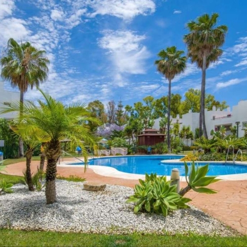 An amazing tropical garden surround the large communal pool.
