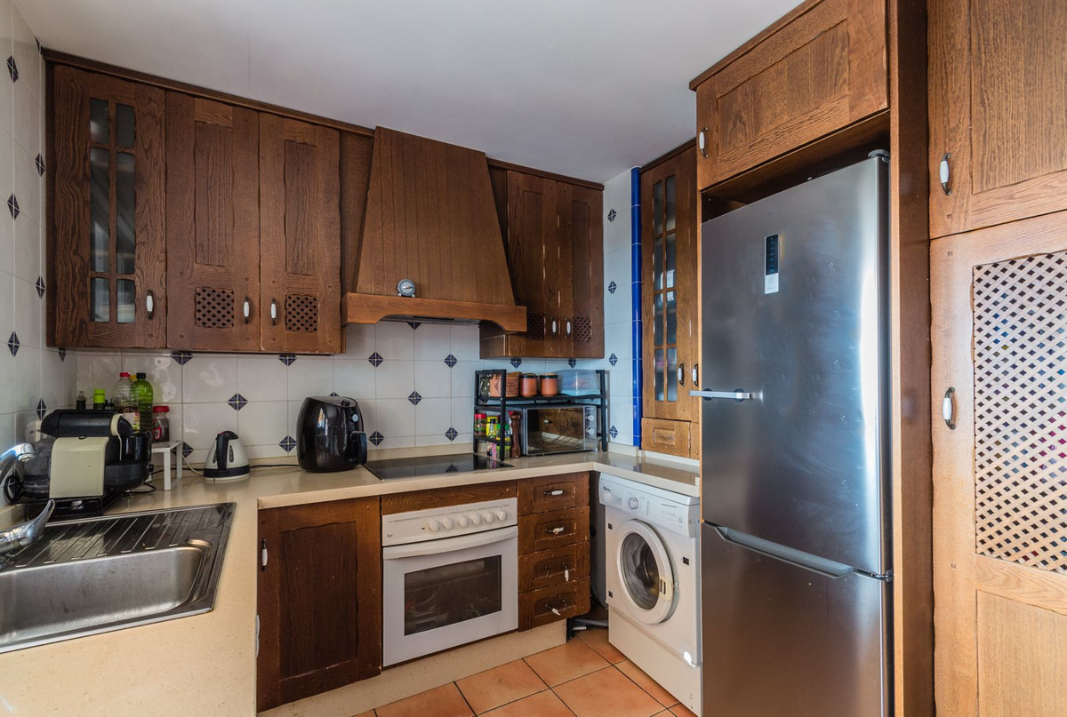 Fuldt udstyret køkken med moderne apparater, også med adgang til terrassen.