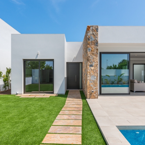 Beautiful one-level villas with double garage on large plot sizes located in a residential zone in San Javier.