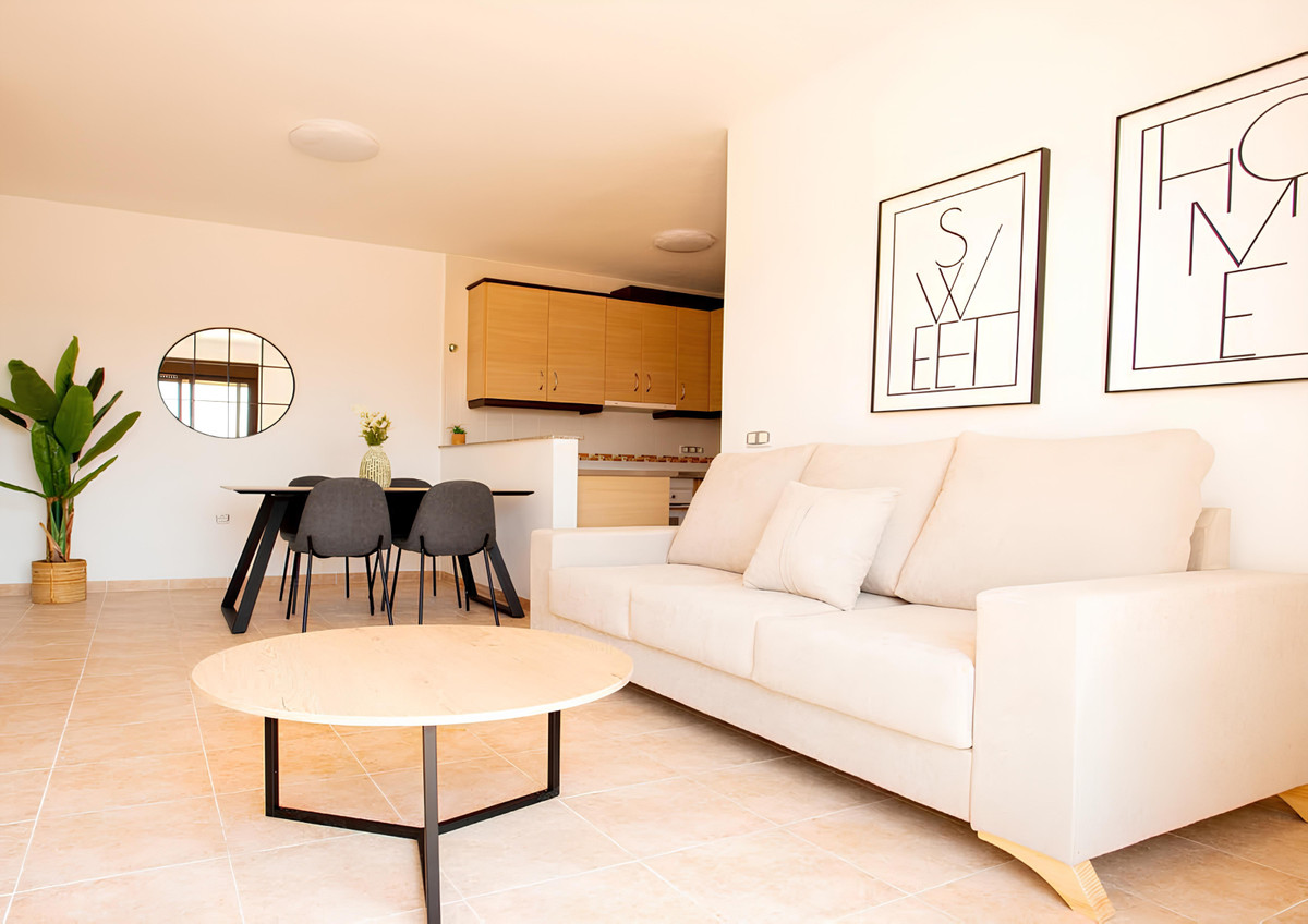 Komplekset består af 114 lejligheder med 2 fælles swimmingpools, og vi markedsfører kun 13 enheder. En lejlighed består af en stor stue, 2 soveværelser, et møbleret køkken, 2 badeværelser og en stor terrasse. Hver lejlighed har en parkeringsplads. Den betagende havudsigt fra de store terrasser og poolen er en af de mest værdifulde attraktioner ved disse lejligheder.