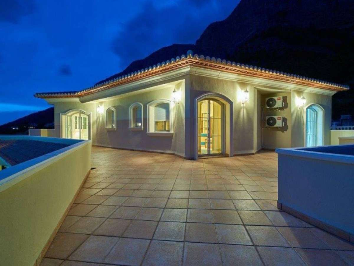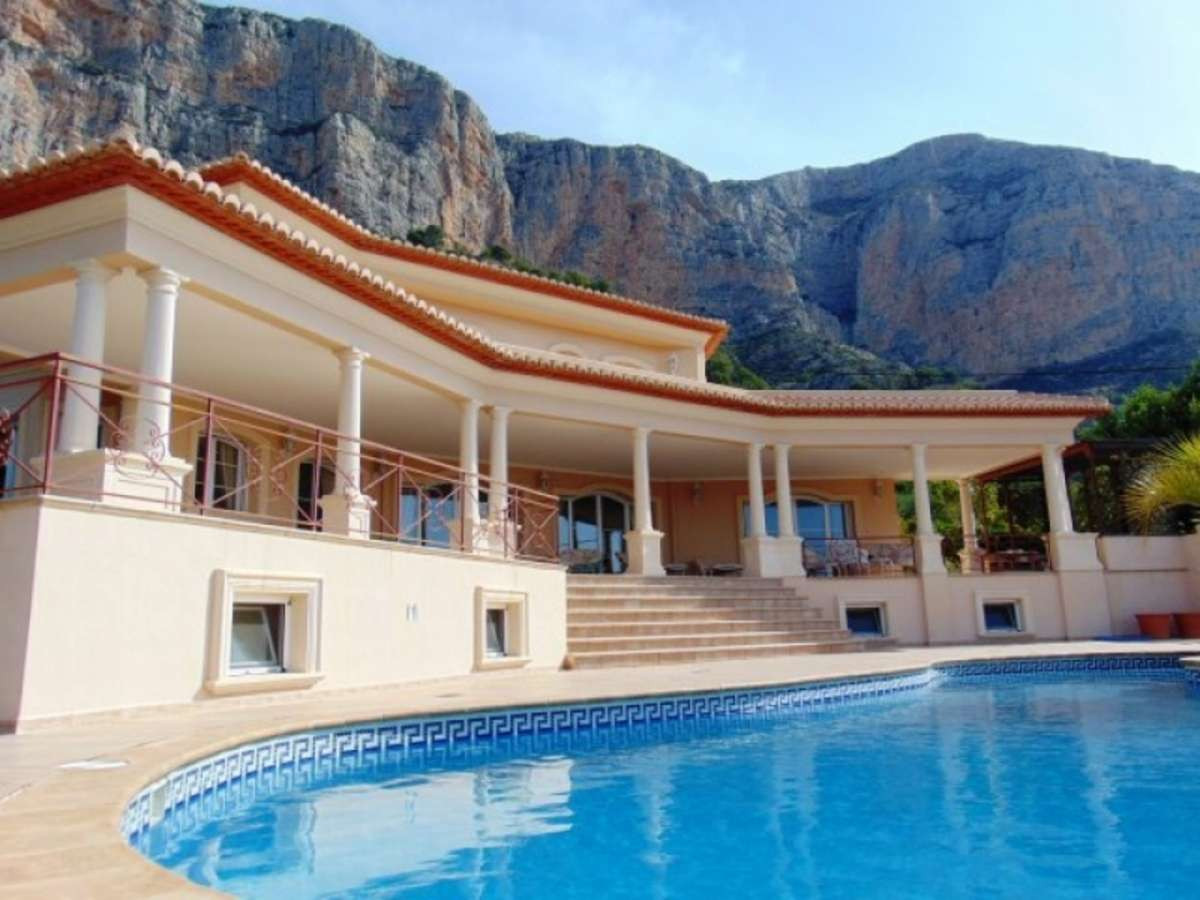 Impressive designed property on the upper slopes of the Montgo with fantastic South facing views.Located 15 minutes from the Old Town of Javea, 10 minutes from La Sella Golf and 15 minutes from the town of Denia.Automatic gates down a gently sloping driveway with plenty of parking, double garage and space for boats or caravans.Porch leading through to an impressive hallway with fabulous wrought iron staircase, leading to upper bedrooms.On the main level at the entrance is a large office/Study/Library, Guest WC, 42m2 Lounge with Feature fireplace and doors leading out onto a wide Naya area overlooking the Swimming Pool, ideal for watching the sunsets.Adjacent is a second lounge ideal TV room or games room. Large Dining room suitable for seating 12 people again with doors leading out onto the terrace.Stylish Kitchen with dining area, featuring central reservation with halogen hob, double oven and Microwave, and separate utility with drying area.Spacious guest bedroom with dressing area and en-suite bathroom with double vanity units.On the upper level are three equally spacious bedrooms all with en-suite bathrooms and with access to a large terrace to enjoy the morning sunrise. The main bedroom has air conditioning and a jacuzzi bath.The 12x6 freeform pool with jacuzzi, pretty terraces and established trees the area and below is a tennis court.On the lower level of the villa accessed internally is a variety of rooms ideal as a gymnasium, apartment, kitchen with plumbing ready. All prepared and ready to go.