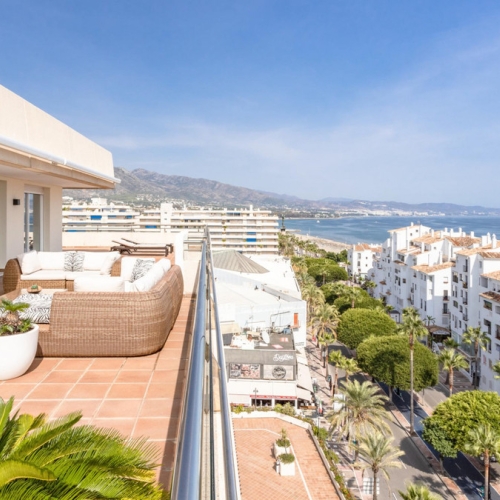 Spectacular Renovated Penthouse in Puerto Banús. Due to its location in Medina Garden, this penthouse is an excellent investment for use as a vacation rental or as a second home.