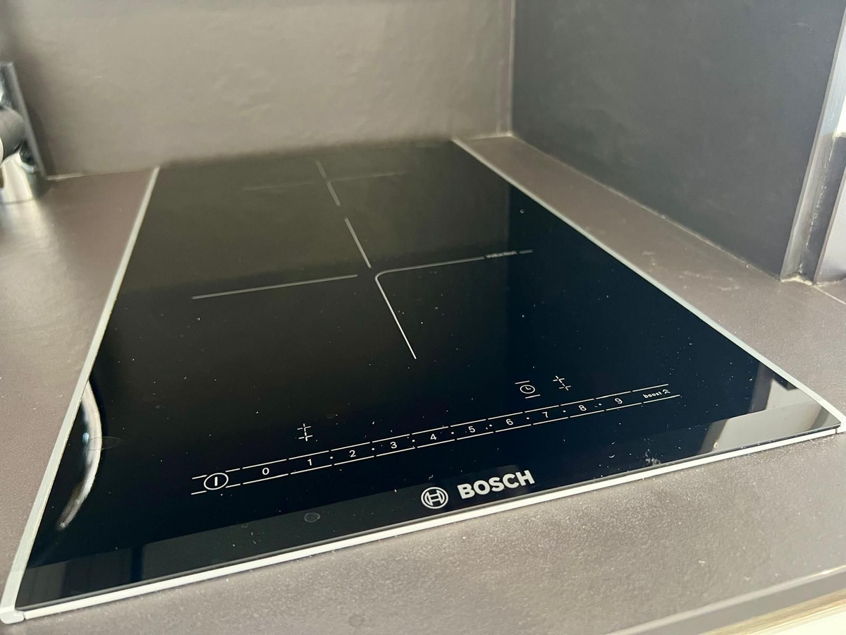 The open-plan layout includes a bright lounge area and a sleek kitchen, perfect for comfortable living and entertaining. The large windows fill the space with natural light, enhancing the airy ambiance.