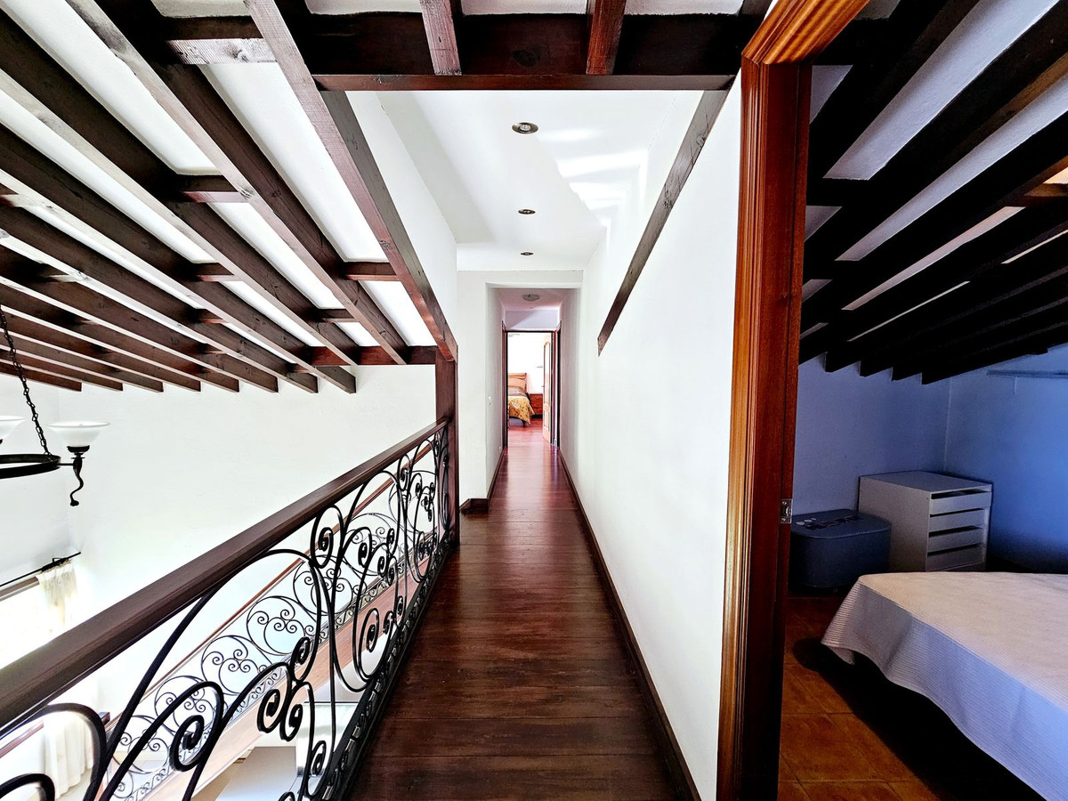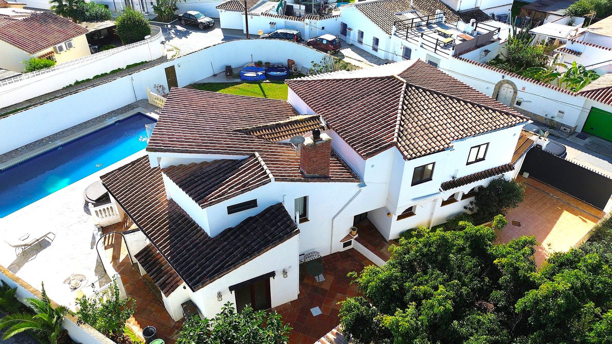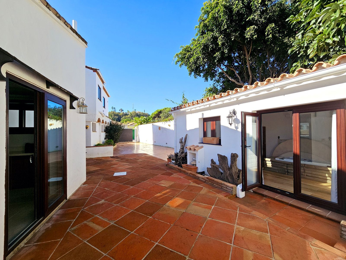 Hovedhuset kan prale af 5 soveværelser, 3 store badeværelser, 2 stuer med 2 pejse, et stort åbent køkken, en spiseplads, alt sammen fordelt på to etager. Der er en yderligere gæstelejlighed med separat indgang, som ville være ideel for personale, teenagere eller gæster. Grunden på 851 m² er helt flad, hvilket gør haveområdet 100% brugbart. Den nuværende ejer har sektioneret en del af haven for at installere et sommerkøkken og alfresco spiseplads med pergola. Resten af haven rummer en ekstra stor swimmingpool og græsplæne, som er perfekt til en familie med børn eller kæledyr. Villaen er tilgængelig via automatiske porte for biler, der kan parkeres inden for den indhegnede ejendom, med en sekundær dør i bunden af haven for tættere adgang til stranden. Dette hus byder på en masse karakter ved at bevare sin andalusiske charme med træbjælker, hvælvede lofter og traditionelt flisebeklædning, mens det tilbyder masser af plads, naturligt lys og privatliv.